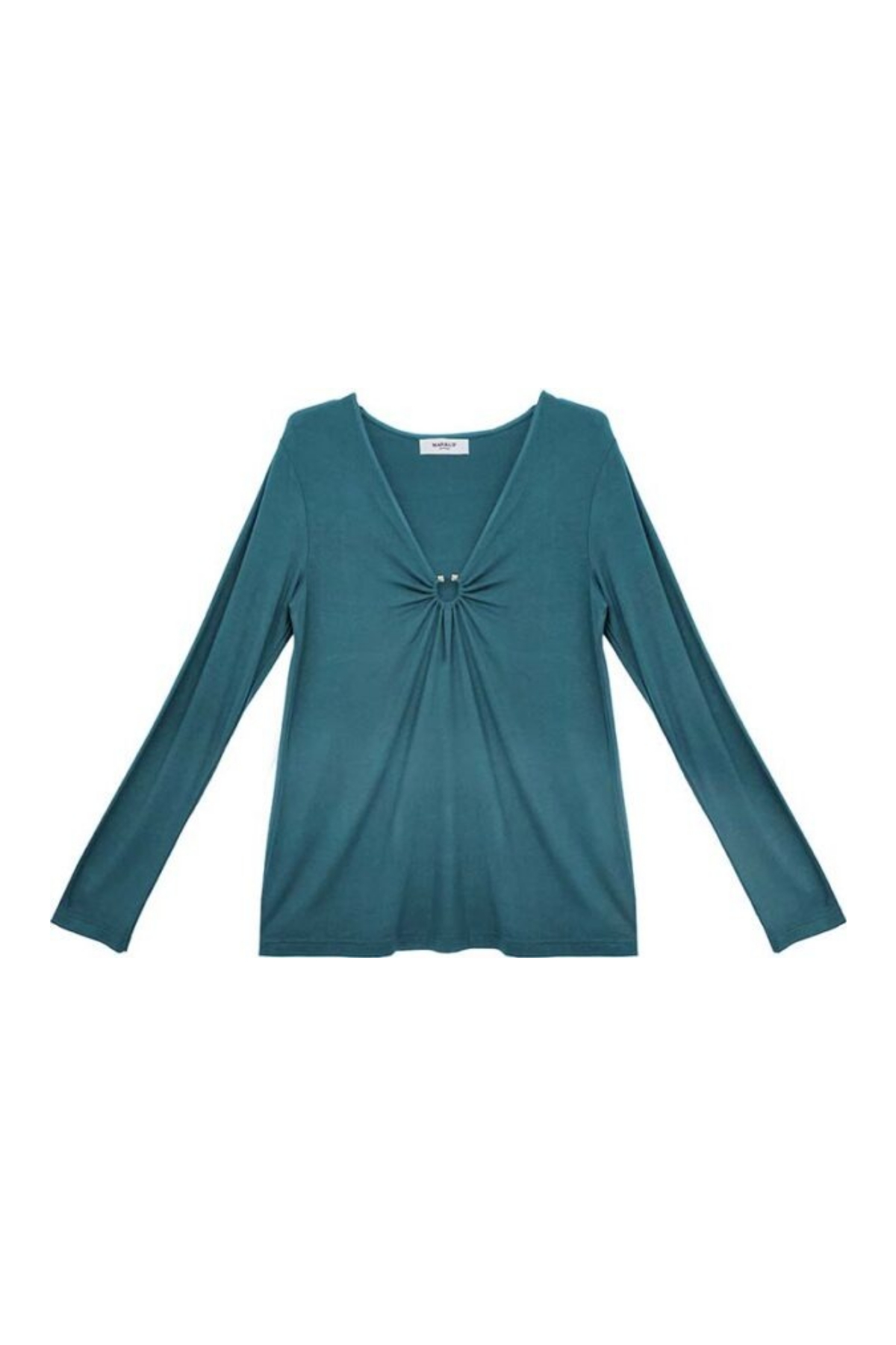 T-shirt in viscosa manica lunga con dettaglio anello, color oro.