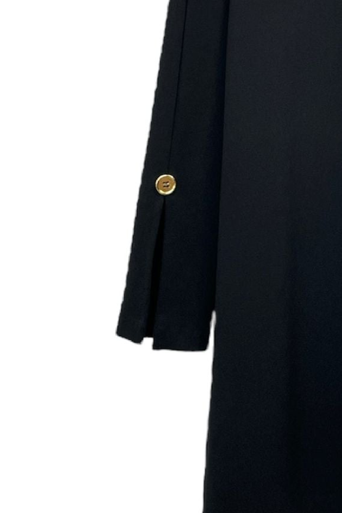 Vestito corto in tessuto elasticizzato misto viscosa. Girocollo regolare, bottoni dorati decorativi applicati sul davanti con doppia goccia. Maniche lunghe con spacchetto al polso e bottone applicato. Vestibilità a trapezio.