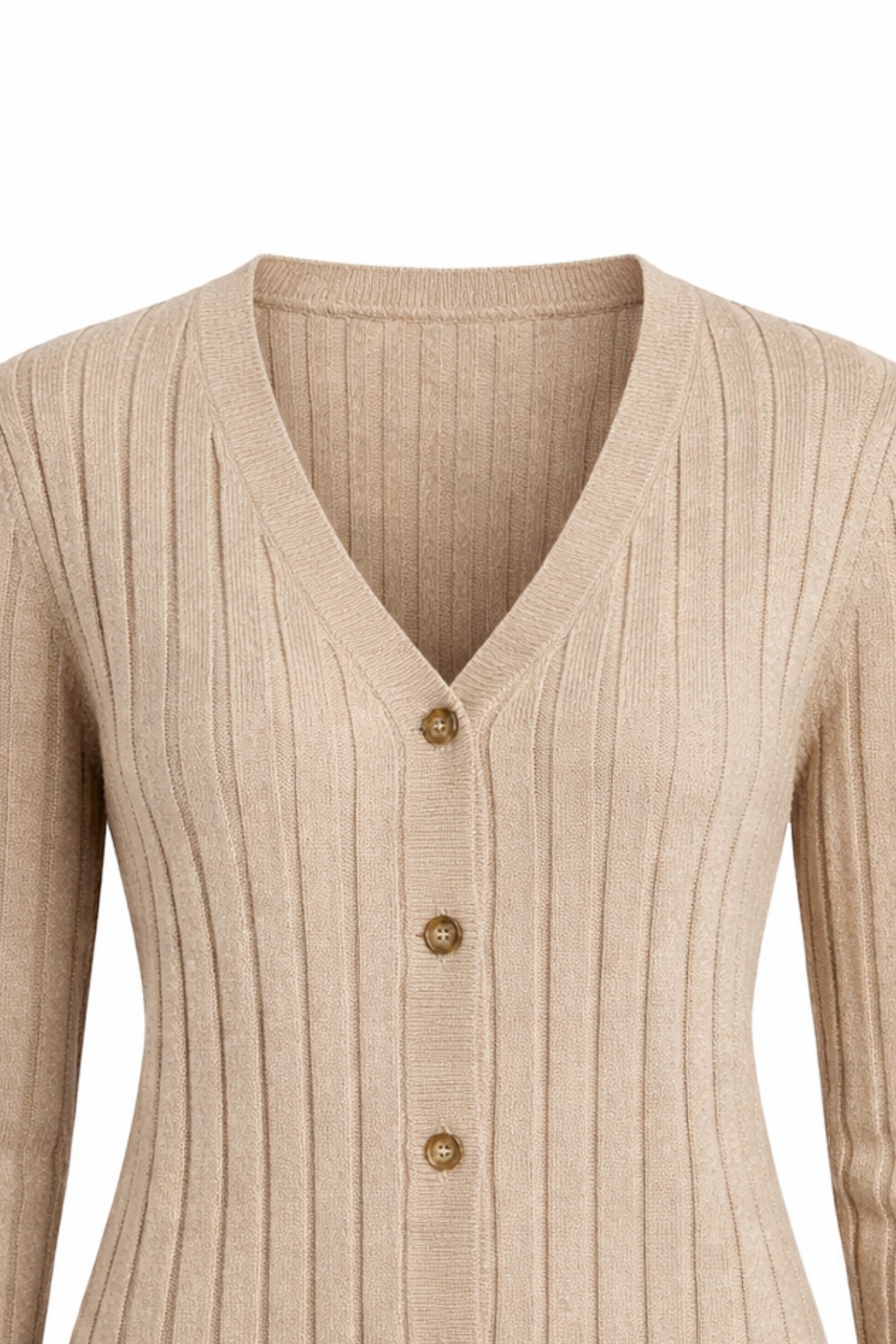 * Cardigan a maglia con chiusura frontale a bottoni.
