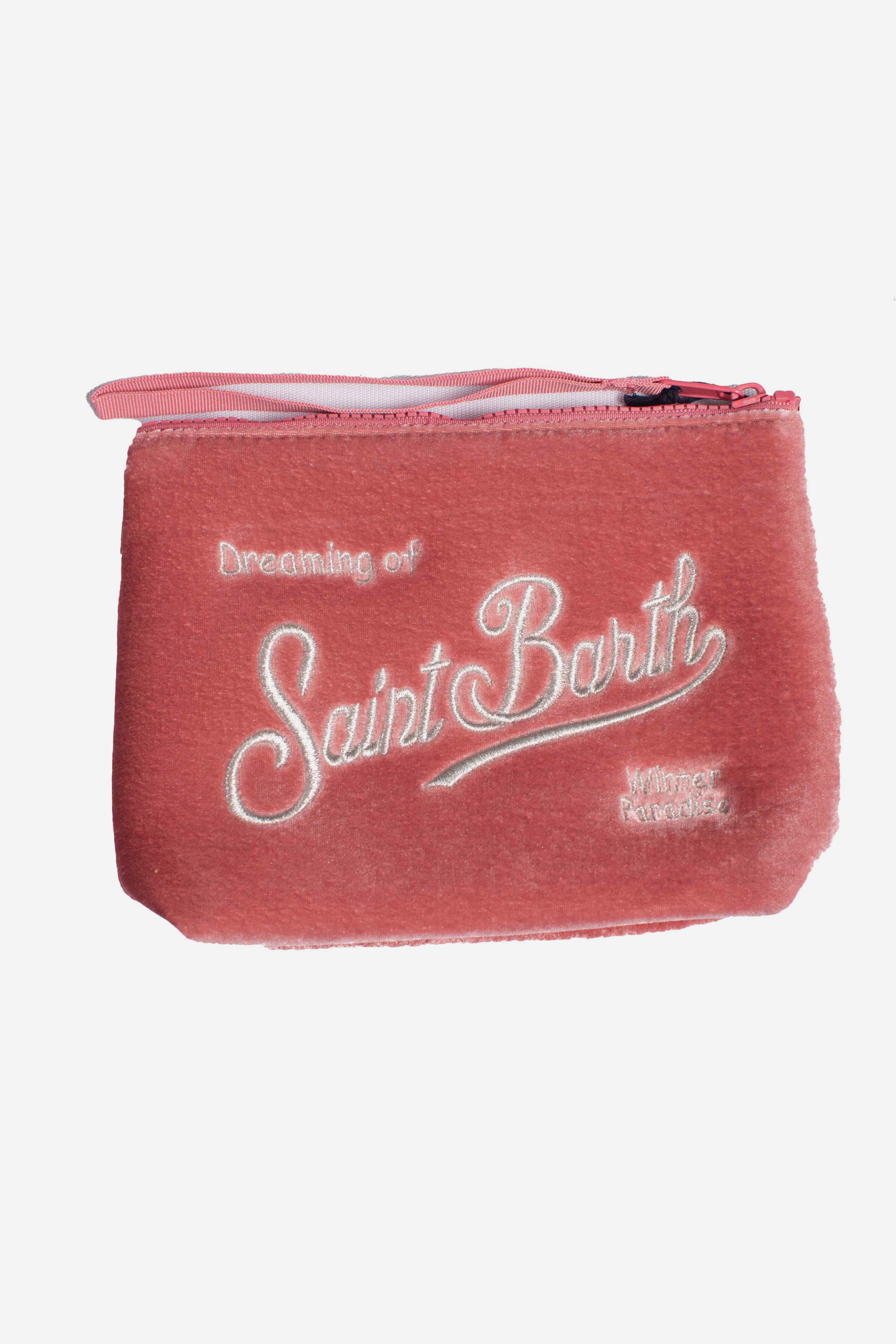 * Pochette in velluto con ricamo Saint Barth frontale