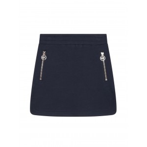 Minigonna a tinta unita, con tasche zippate e dettaglio insert scritta logo dorata in vita sul retro. MICHAEL KORS