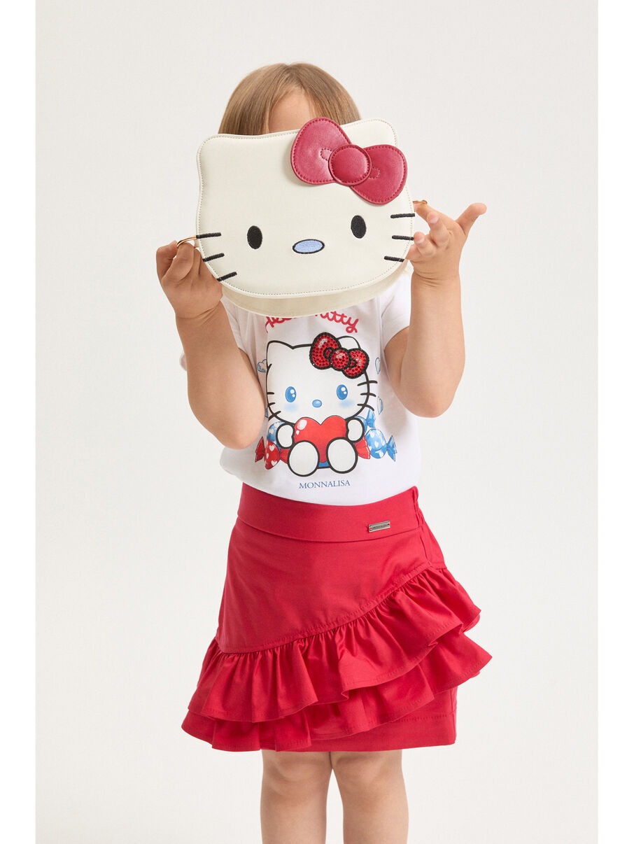 La maglietta imperdibile per ogni fan di Hello Kitty, arricchita da dettagli in strass. Perfetta per aggiungere un tocco giocoso al look quotidiano. Ideale per compleanni o giornate casual.