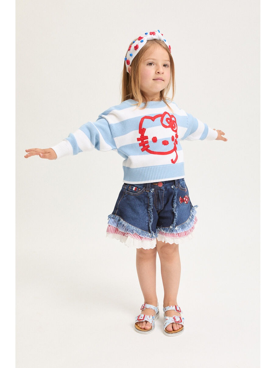 La maglia perfetta per far risplendere la tua bambina con il simpatico volto di Hello Kitty. Ideale per party e occasioni speciali, abbinala a jeans per un look casual trendy.