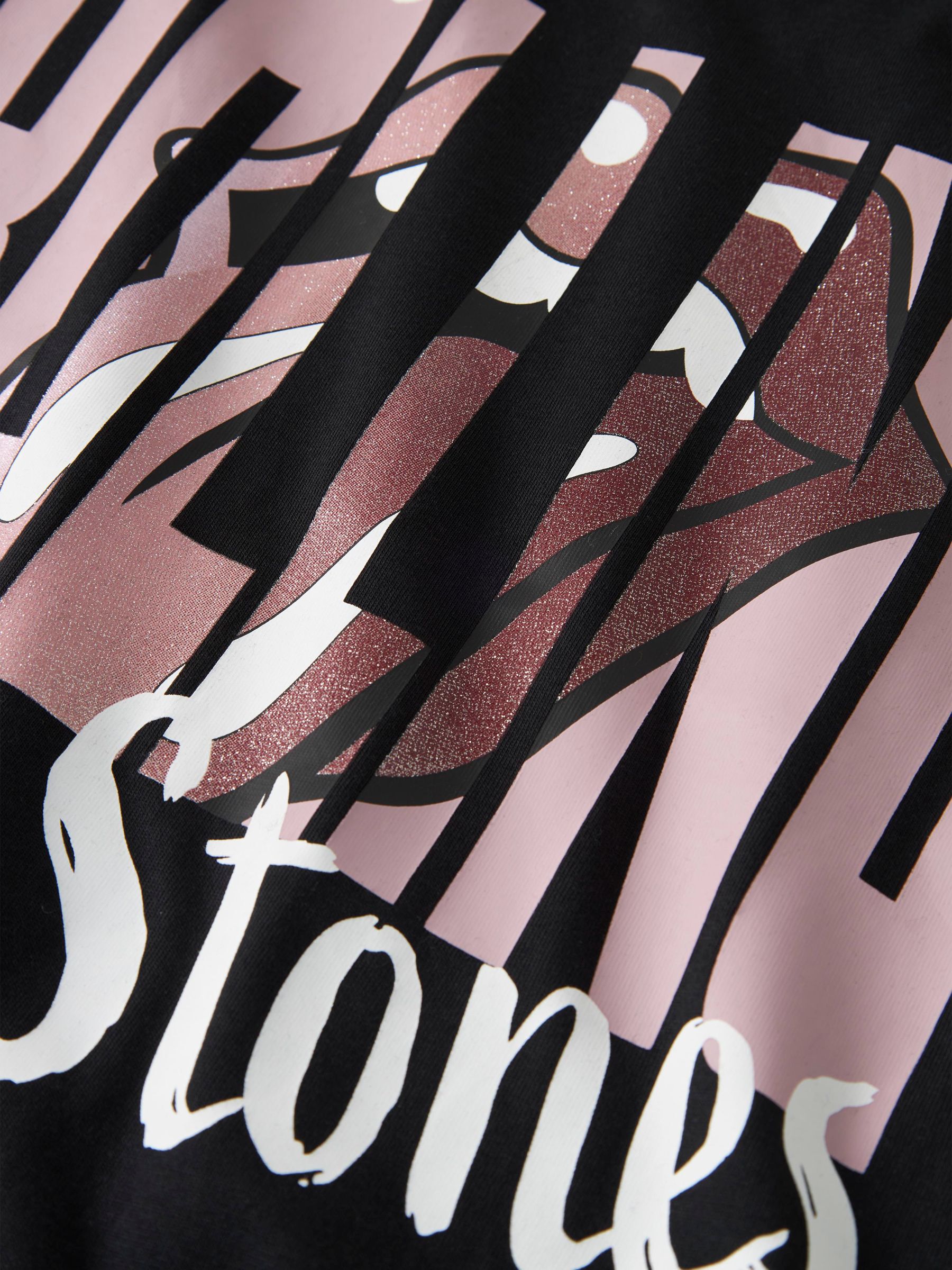 - Tipo di prodotto: Top - Stampa: Stampa glitterata per un look scintillante e fresco - Stampa: Stampa in gomma per una sensazione di morbidezza - Collo: Scollo rotondo - Manica: Maniche corte - Tessuto: Jersey - Vestibilità: Regular Fit