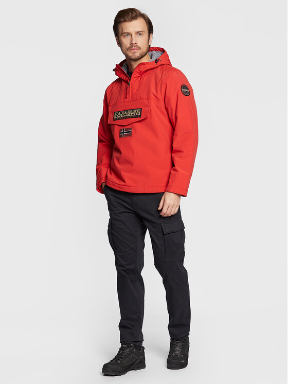 Giubbotto per uomo con chiusura slip on e zip, cappuccio regolabile, iconico tascone sulla parte frontale con logo in lettering e bandiera multicolore, toppa su manica lunga, chiusura a zip sul retro