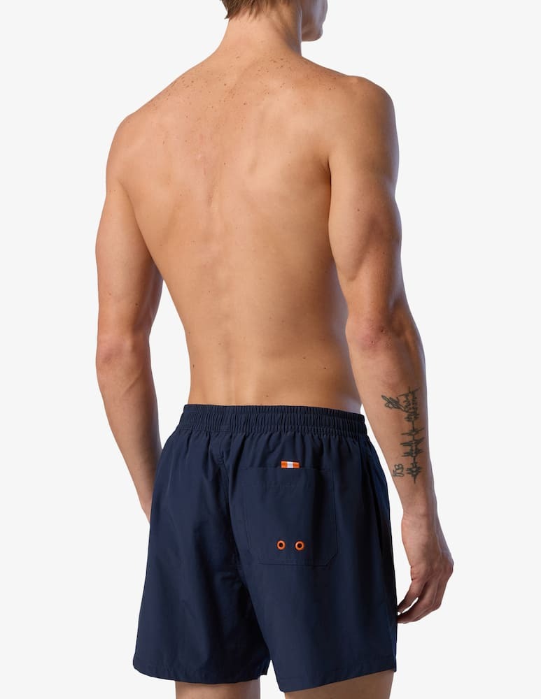 Boxer mare d'ispirazione volley pensati per i look da spiaggia e il tempo libero in piscina. Il modello ha un design versatile e facile da indossare ed è progettato per rispettare il pianeta perché è realizzato in misto cotone e nylon riciclato. La coulisse brandizzata e il logo sulla gamba aggiungono un tocco distintivo.