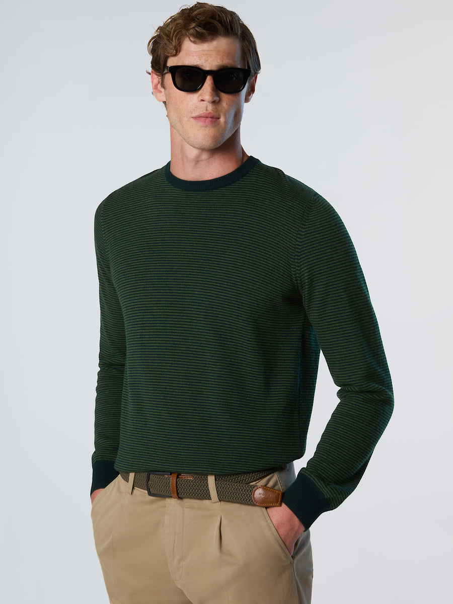 Questo maglione con micro motivo a righe è un omaggio alla storia North Sails legata alle atmosfere del mare. Il modello ha una linea accogliente ed è realizzato in maglia soffice di misto cashmere e fibre riciclate per limitare la dispersione dei rifiuti nell'ambiente. I bordi a costine creano aderenza.