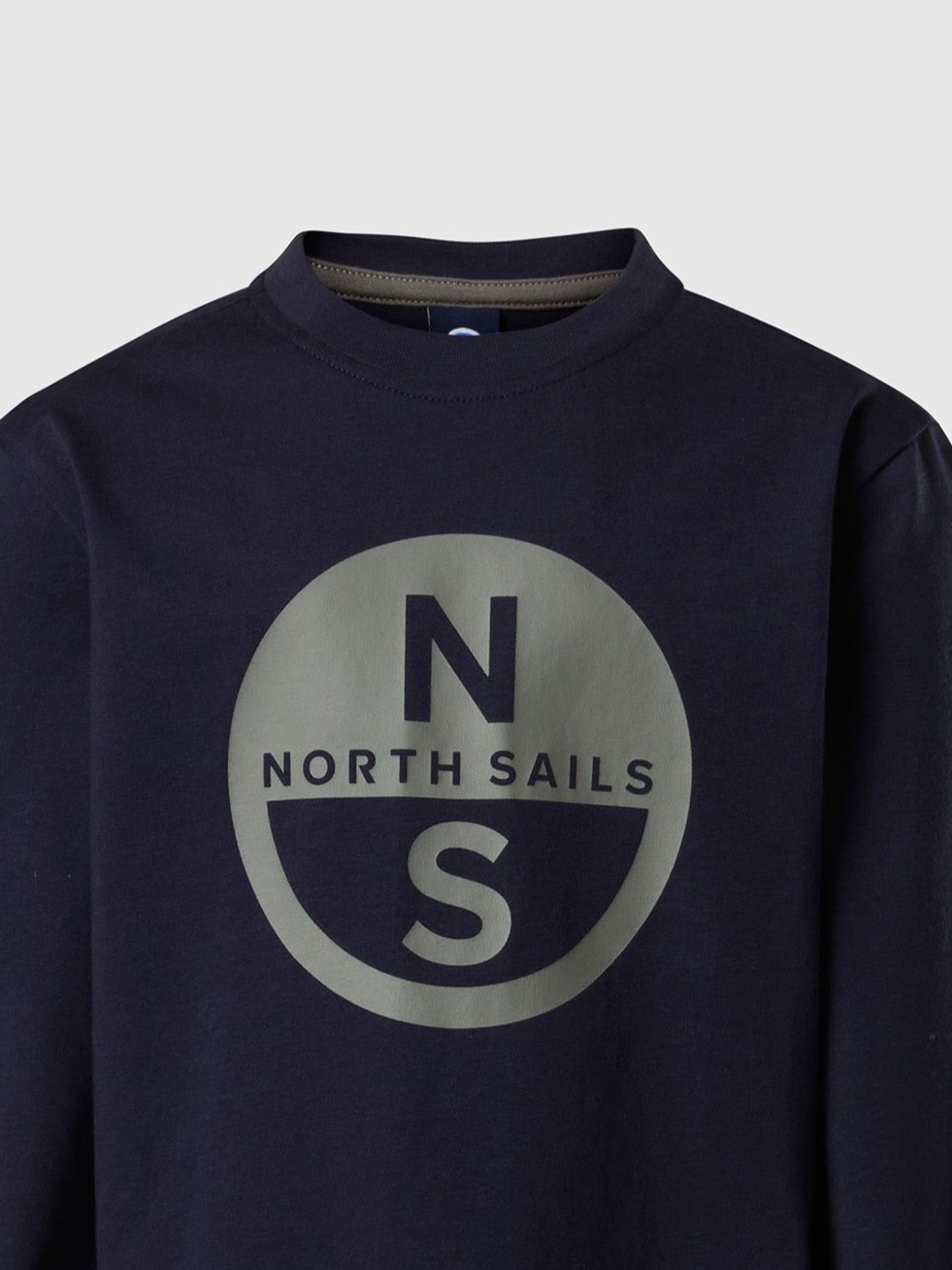 Perfetta per i look casual e il tempo libero, questa t-shirt a maniche lunghe da bambino combina linee disinvolte e attitudine North Sails. Il modello contribuisce attivamente a ridurre il consumo di acqua e le emissioni nocive perché è realizzato in jersey di cotone organico. Il maxi logo stampato sul davanti è un'autentica dichiarazione di stile.