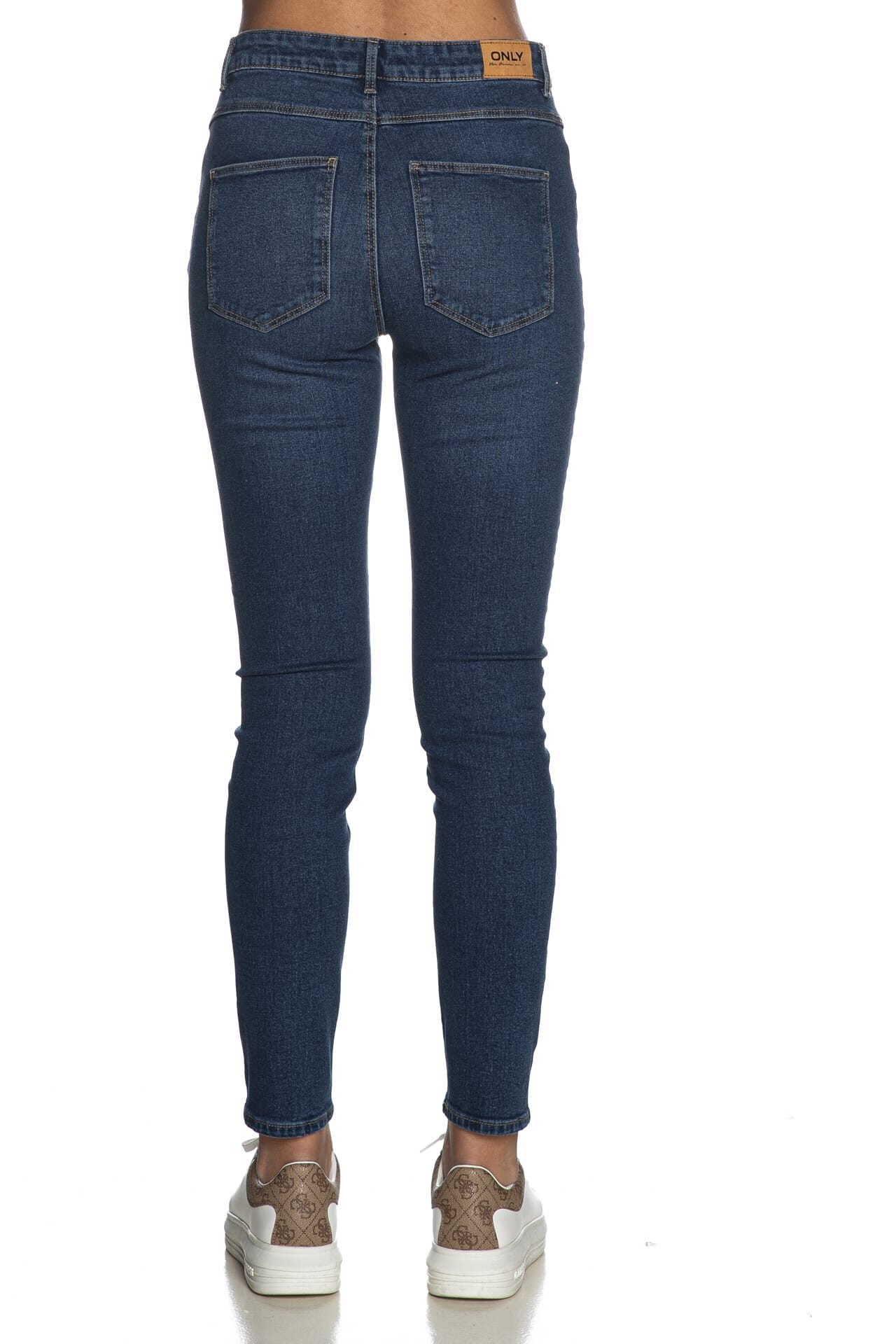 Jeans Only Druna da donna in denim di misto cotone poliestere e viscosa stretch sottoposto a trattamento per una finitura di colore unica, modello cinque tasche skinny fit a vita alta, con chiusura zip coperta