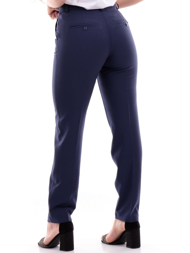 Pantaloni Only blu da donna Cigarette, realizzati in morbida viscosa. Questo pantalone Only ha la chiusura con bottone logato più zip, due tasche laterali con taglio obliquo, due tasche posteriori a filo con bottone e la predisposizione per indossare la cintura.