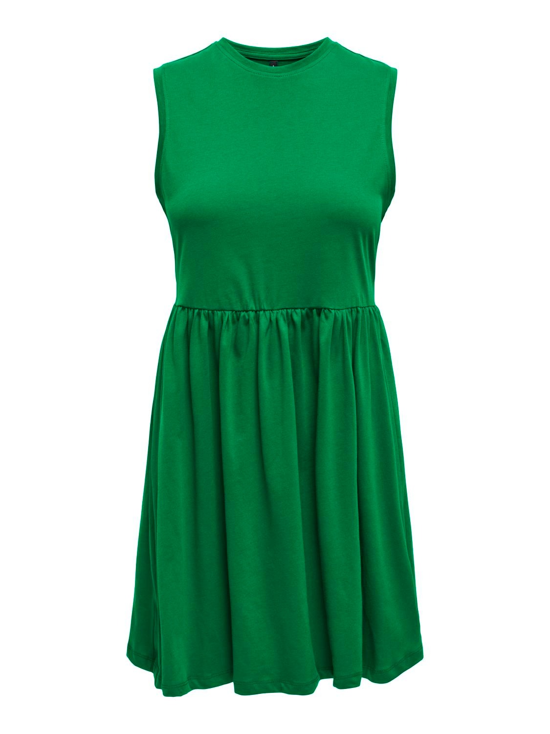 Abito Corto Only May Life da donna in jersey di cotone organico, modello peplum smanicato dalla linea morbida, con girocollo e giromaniche in maglia a costine