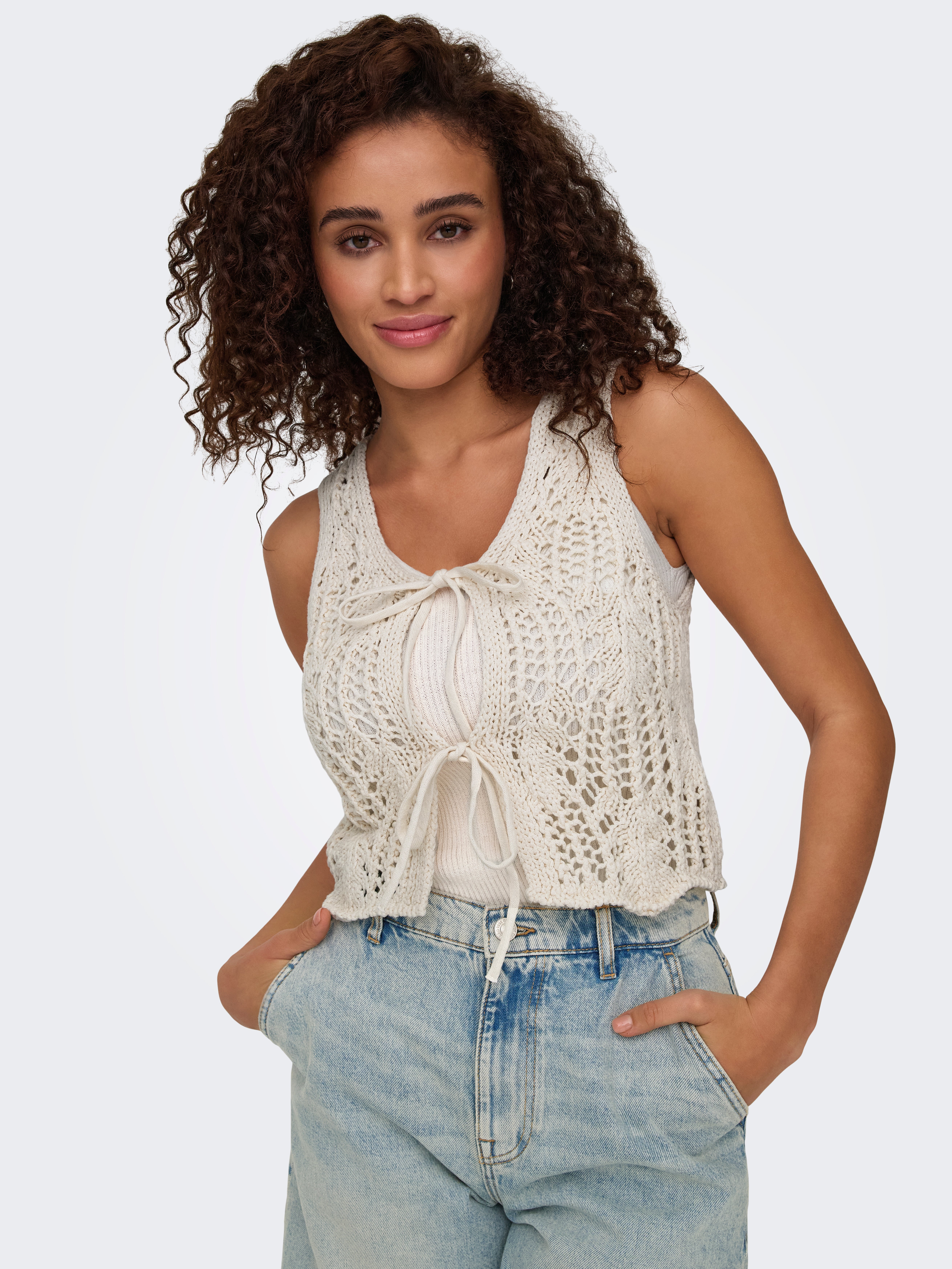 ONLLIZZY LIFE SL CROCHET TIE VEST KNT