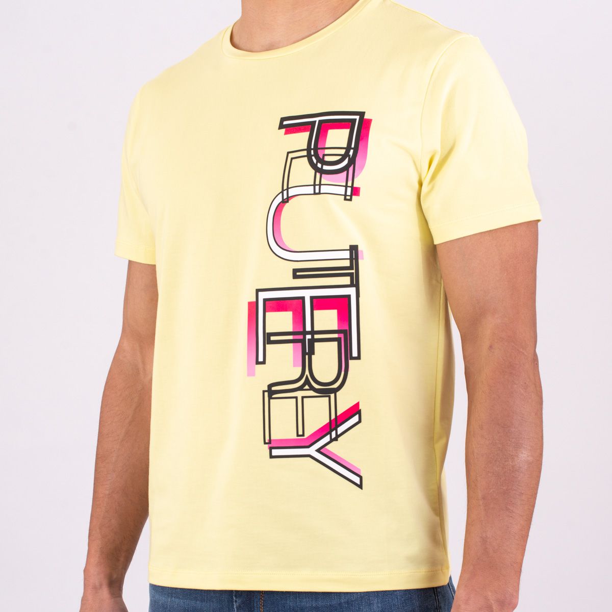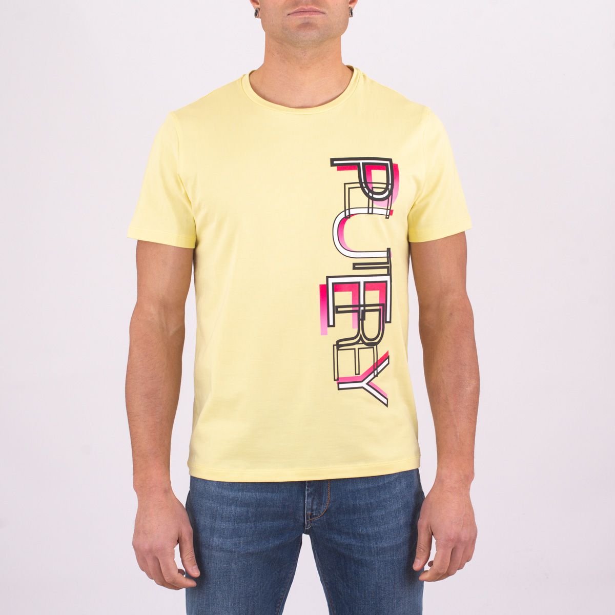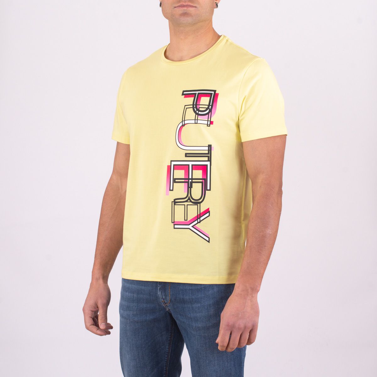 T-shirt di colore giallo in cotone elasticizzata, con stampa scritta Peuterey a fantasia.
