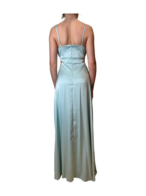 Abito lungo realizzato in raso con poliestere riciclato. L'abito ha coppe preformate a conchiglia con pieghe sul tessuto, spalline sottili e regolabili. Sui fianchi e al centro dello scollo sono presenti degli inserti in tulle finissimo che fanno intravedere l'incarnato. Gonna dritta leggermente ampia al fondo, chiusura tramite zip a scomparsa posta sul retro. Abito elegante da cerimonia, indossalo con un coprispalle in raso o una morbida stola. Questo capo fa parte del progetto Everyone Can: Rinascimento si impegna ad utilizzare nuove fibre come il poliestere riciclato in ottica di sostenibilità economica, sociale e ambientale. Il capo è interamente made in Italy.