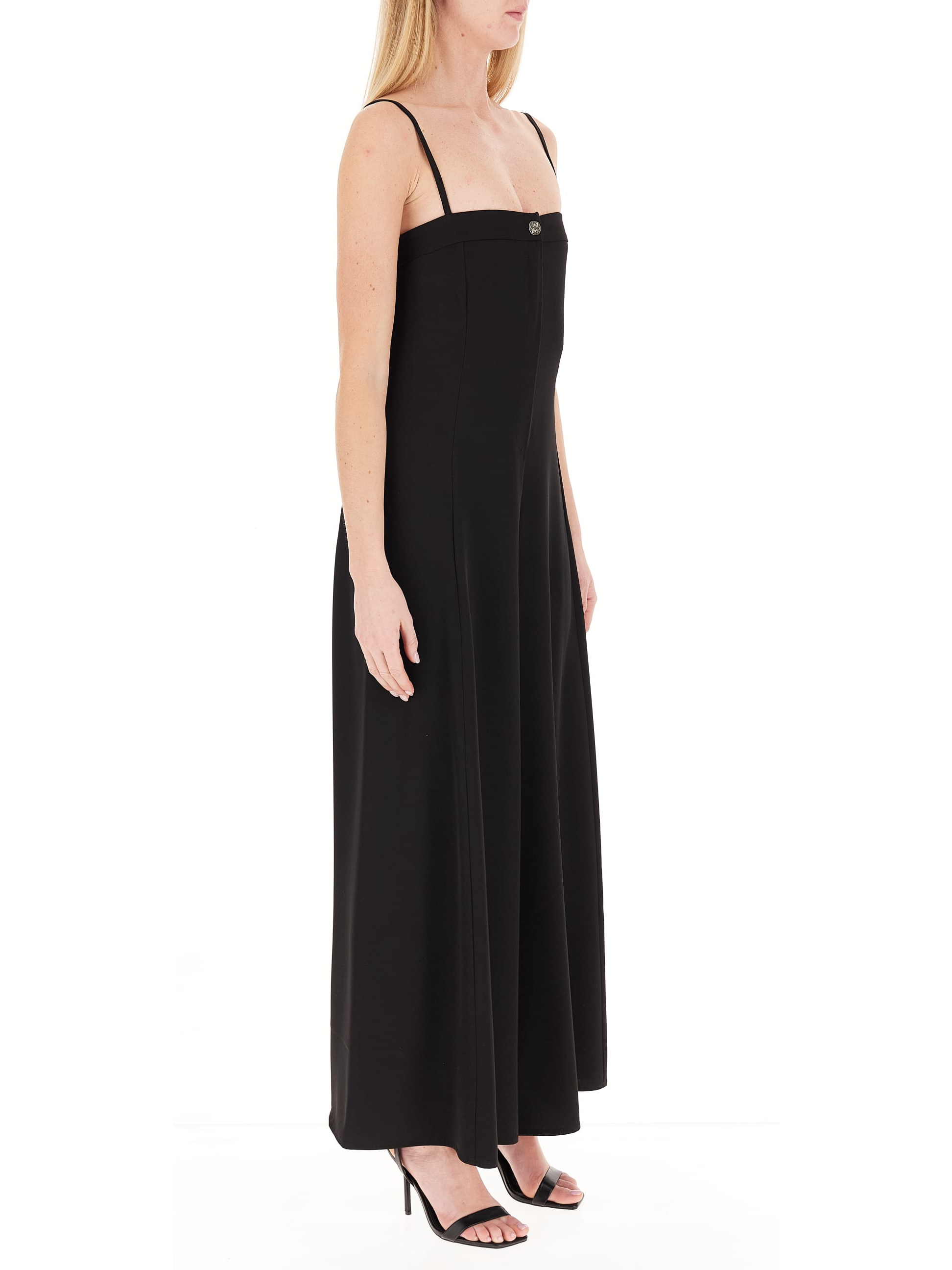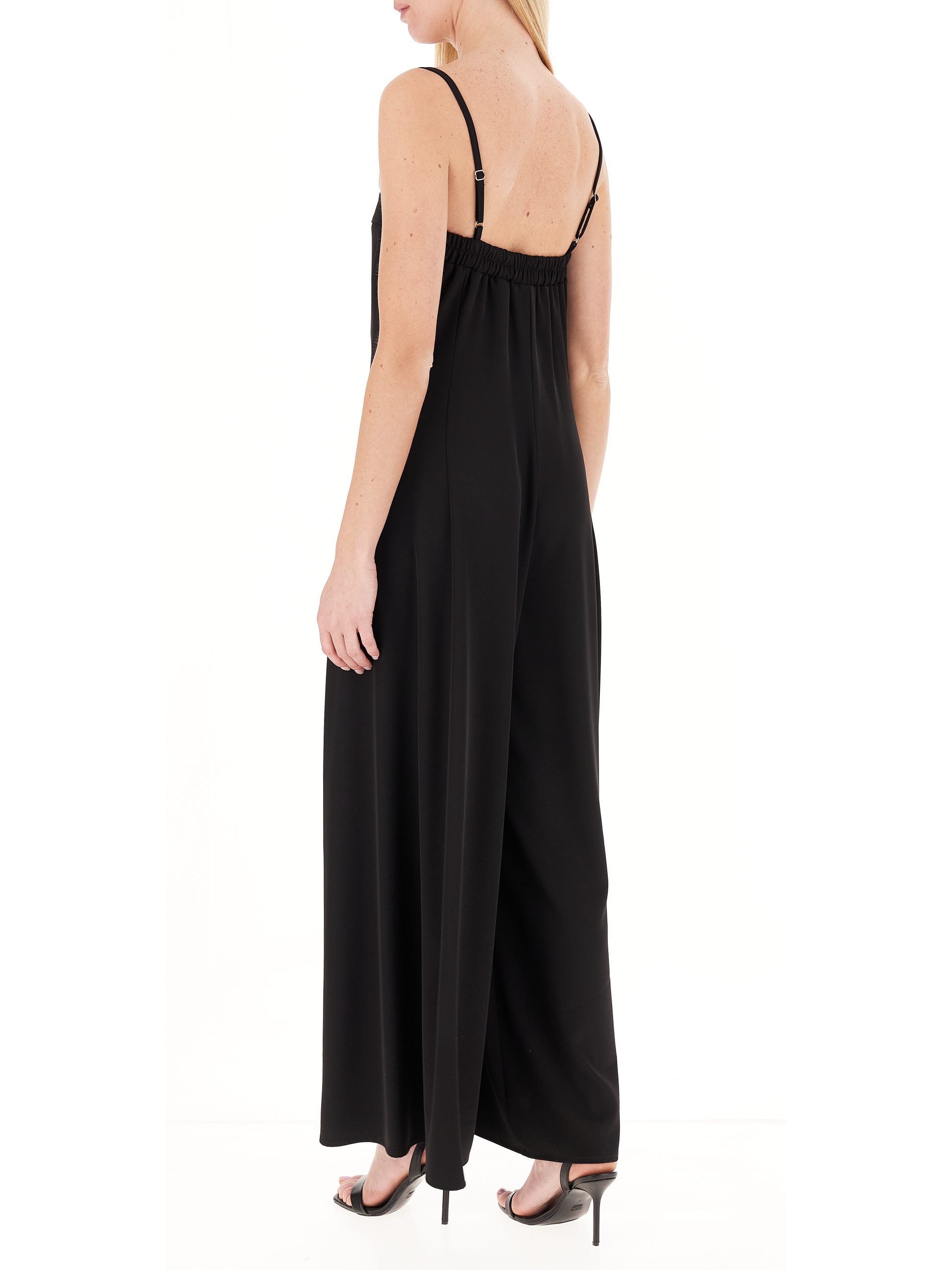 * La tuta presenta una linea aderente sul busto e ampia sulle gambe.