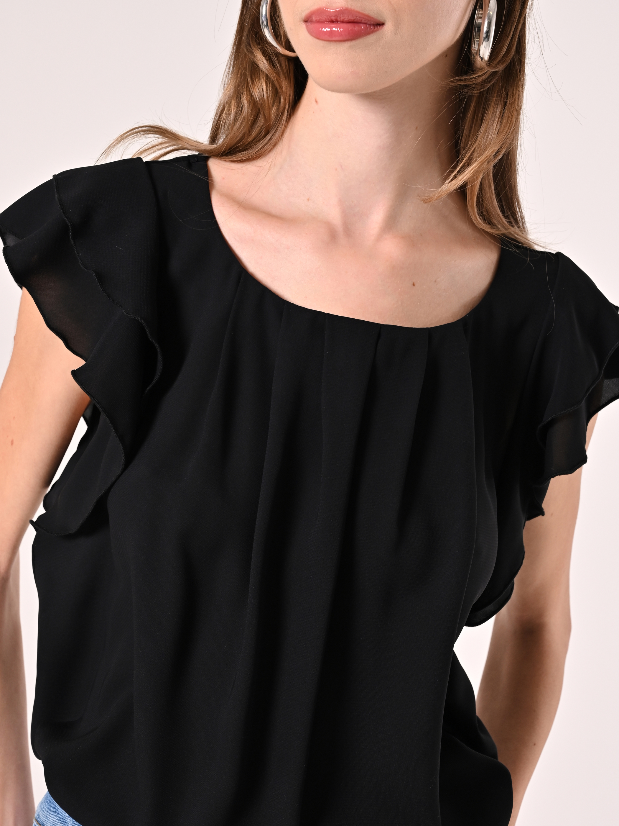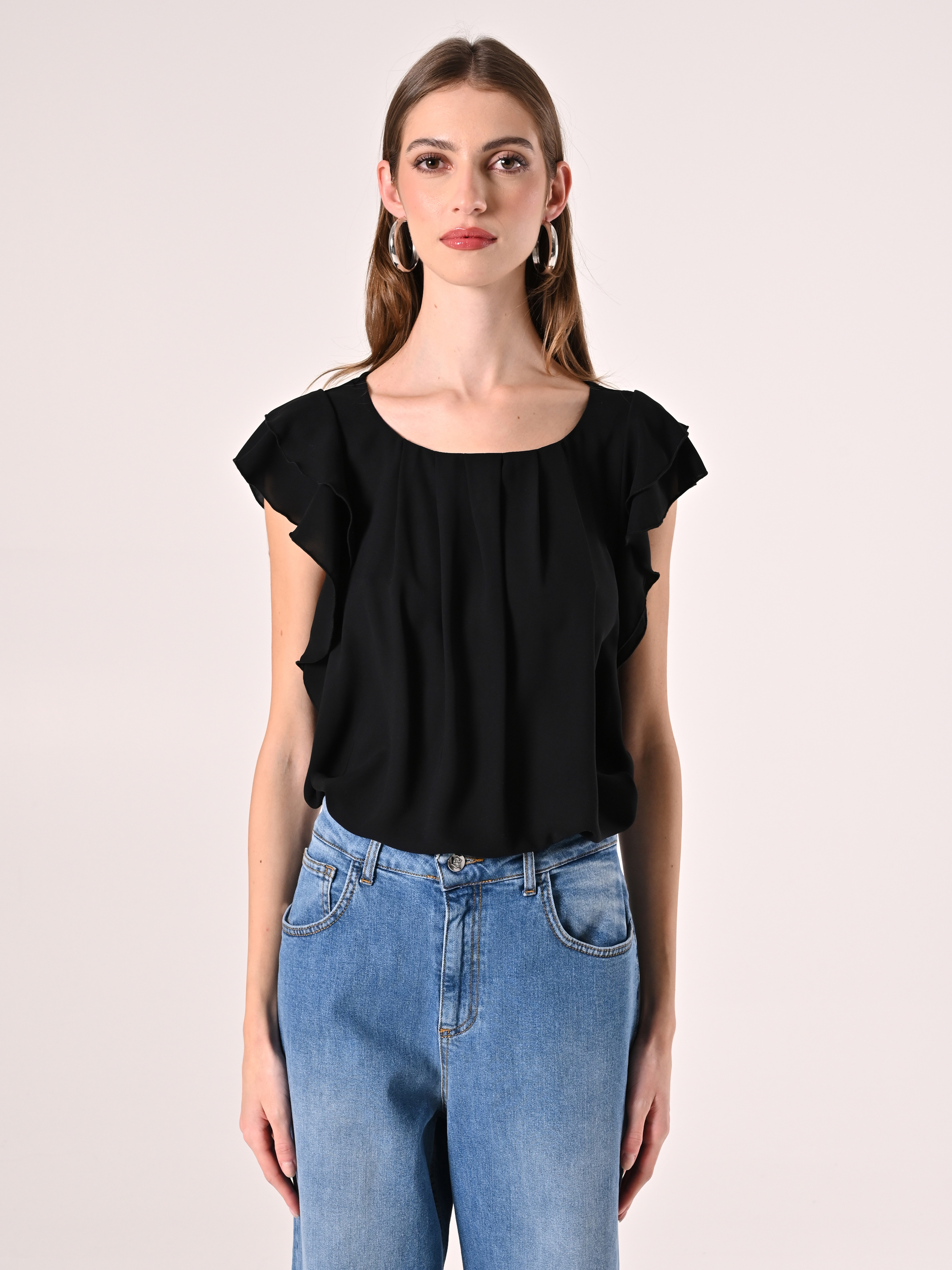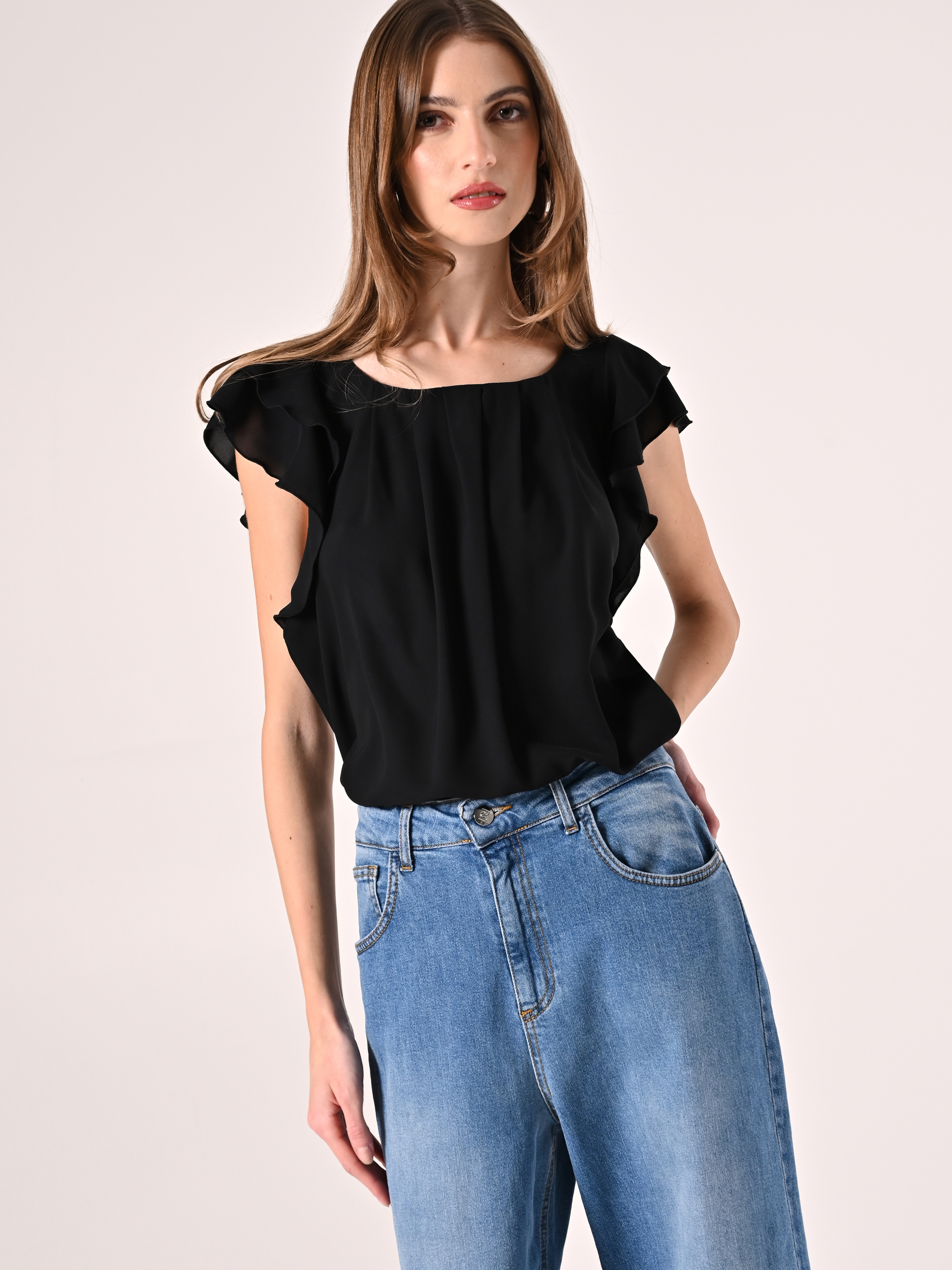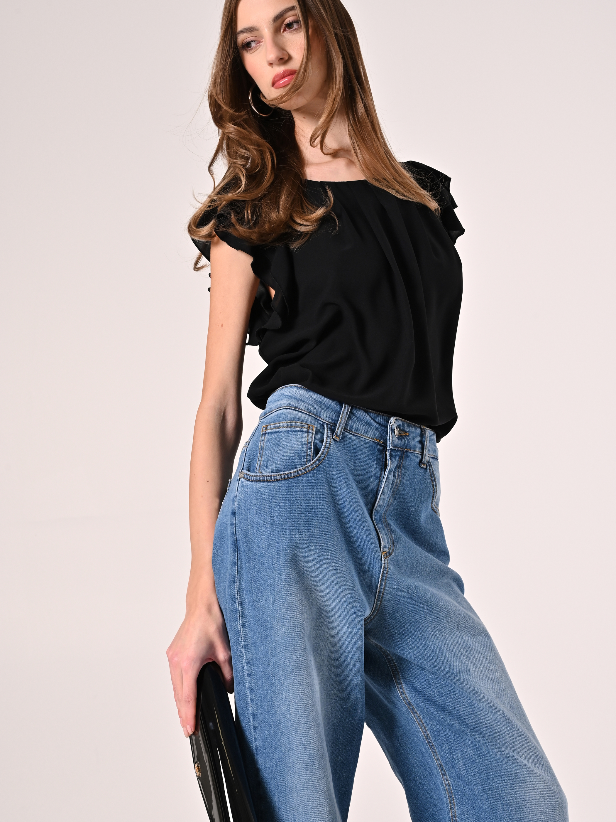 La Blusa con Maniche ad Aletta è un capo elegante e versatile, perfetto per aggiungere un tocco femminile ai tuoi look quotidiani.