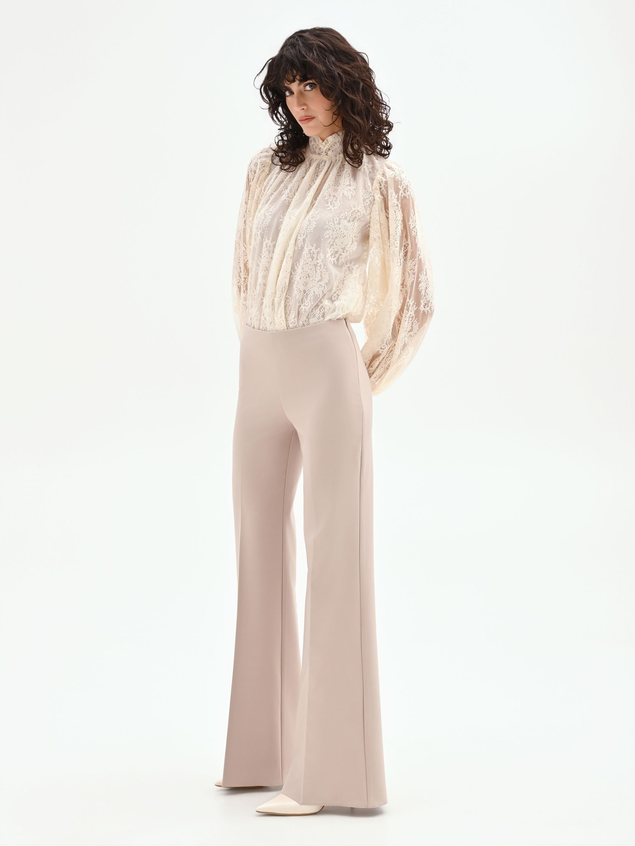 Una silhouette fluida e slanciata definisce questi pantaloni palazzo beige talpa, un capo versatile pensato per essere indossato con stile tutto il giorno.