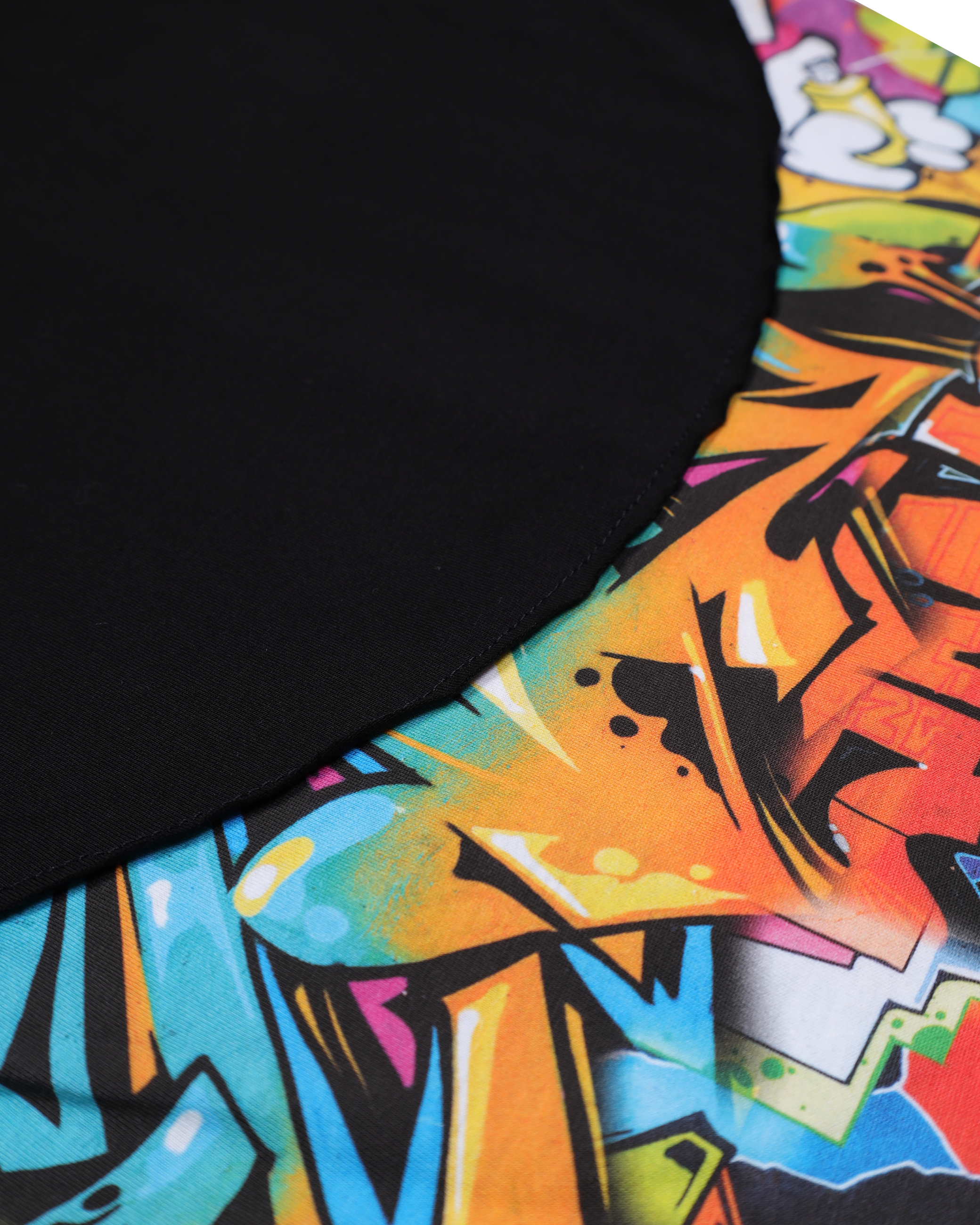 T-shirt nera a girocollo con fantasia a contrasto