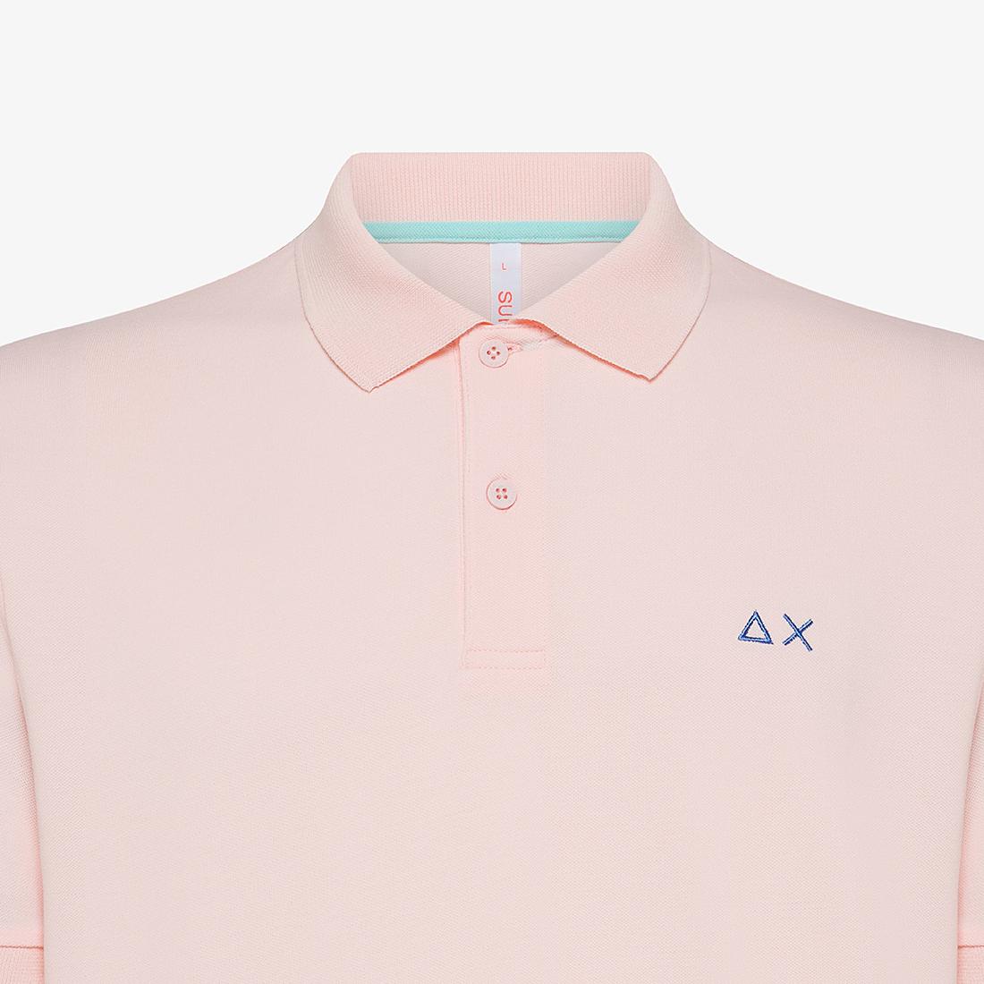 Polo in piqué di cotone a maniche corte, chiusura frontale a due bottoni, bordi a costine, piccoli spacchi laterali sul fondo, stemma logo ricamato sul petto