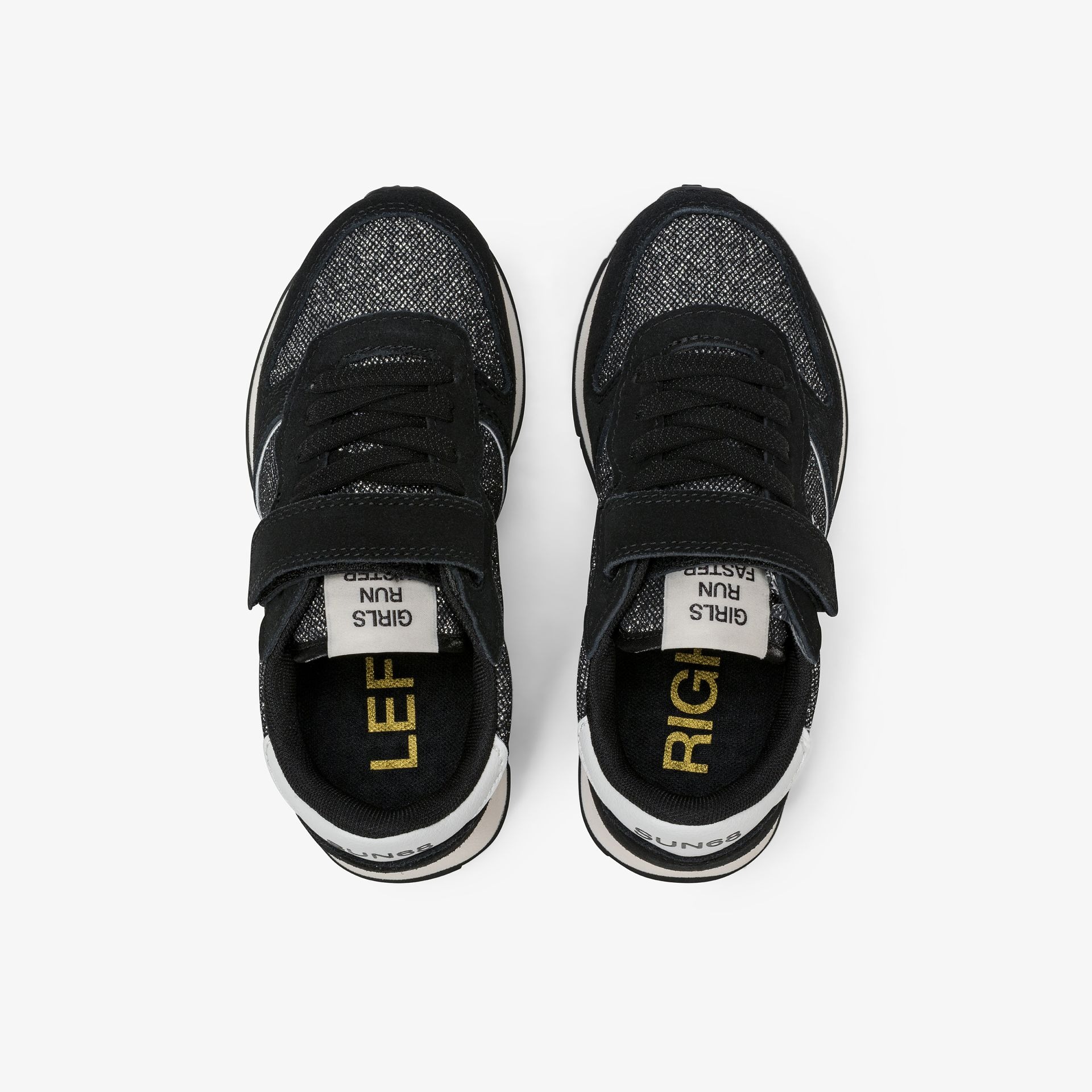 Perfetta per la scuola e il tempo libero, la sneaker Ally Glitter è l'icona SUN68 proposta con una speciale tomaia in materiale glitterato, dettagli laminati e il logo ricamato in filo lurex. La chiusura con lacci e cinturino a strappo offre massima versatilità.