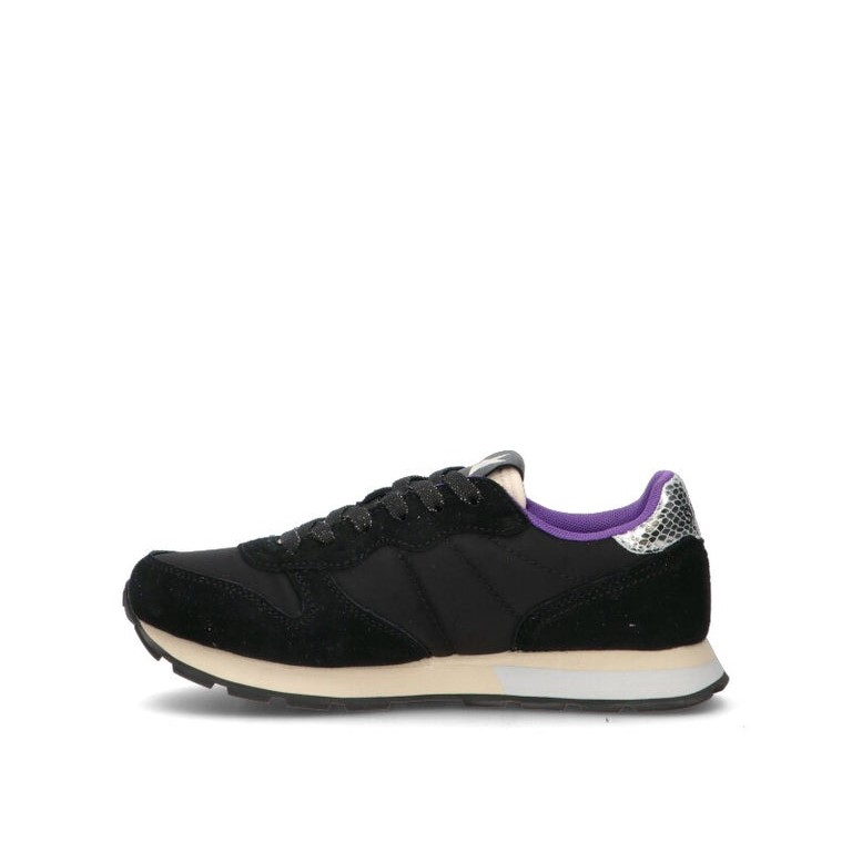 Sneaker ragazza nera in pelle scamosciata e tessuto. Perfette per l'uomo moderno che vuole unire praticità e tendenze, le sneaker Sun68 sono ideali per ogni occasione, dal tempo libero al lavoro, sempre con un occhio alla qualità e allo stile.