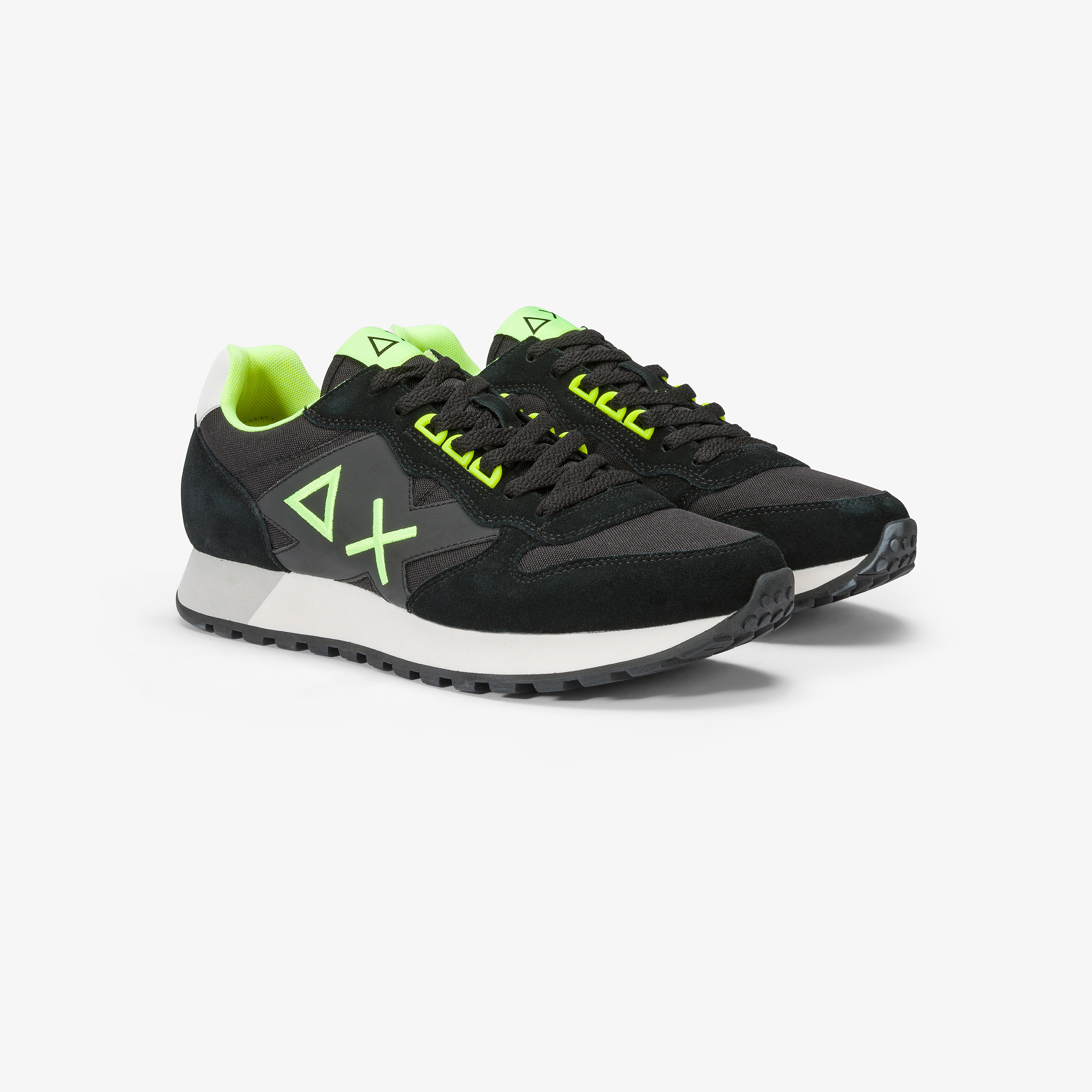 - Dettagli in contrasto su linguetta, tallone e suola.