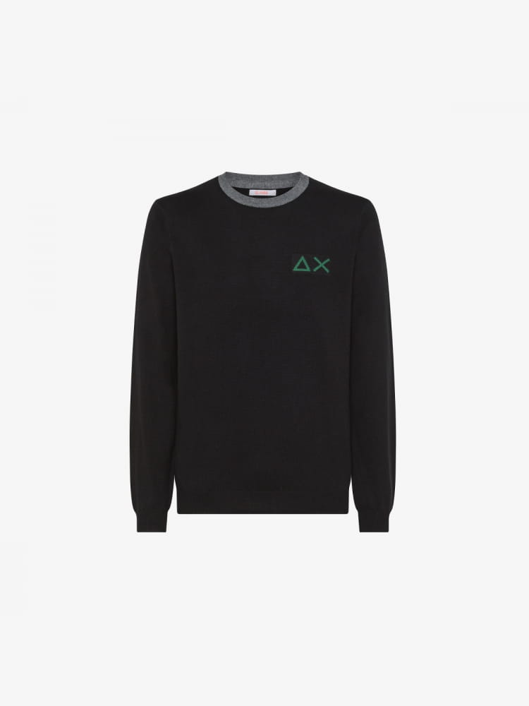 Dettagli a contrasto sul girocollo e le maniche