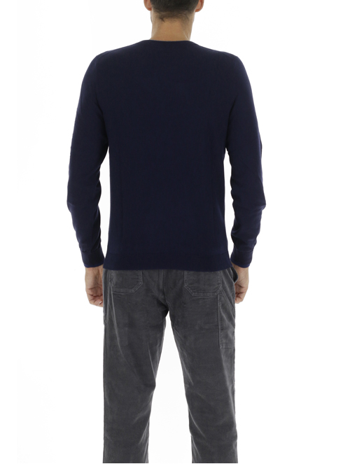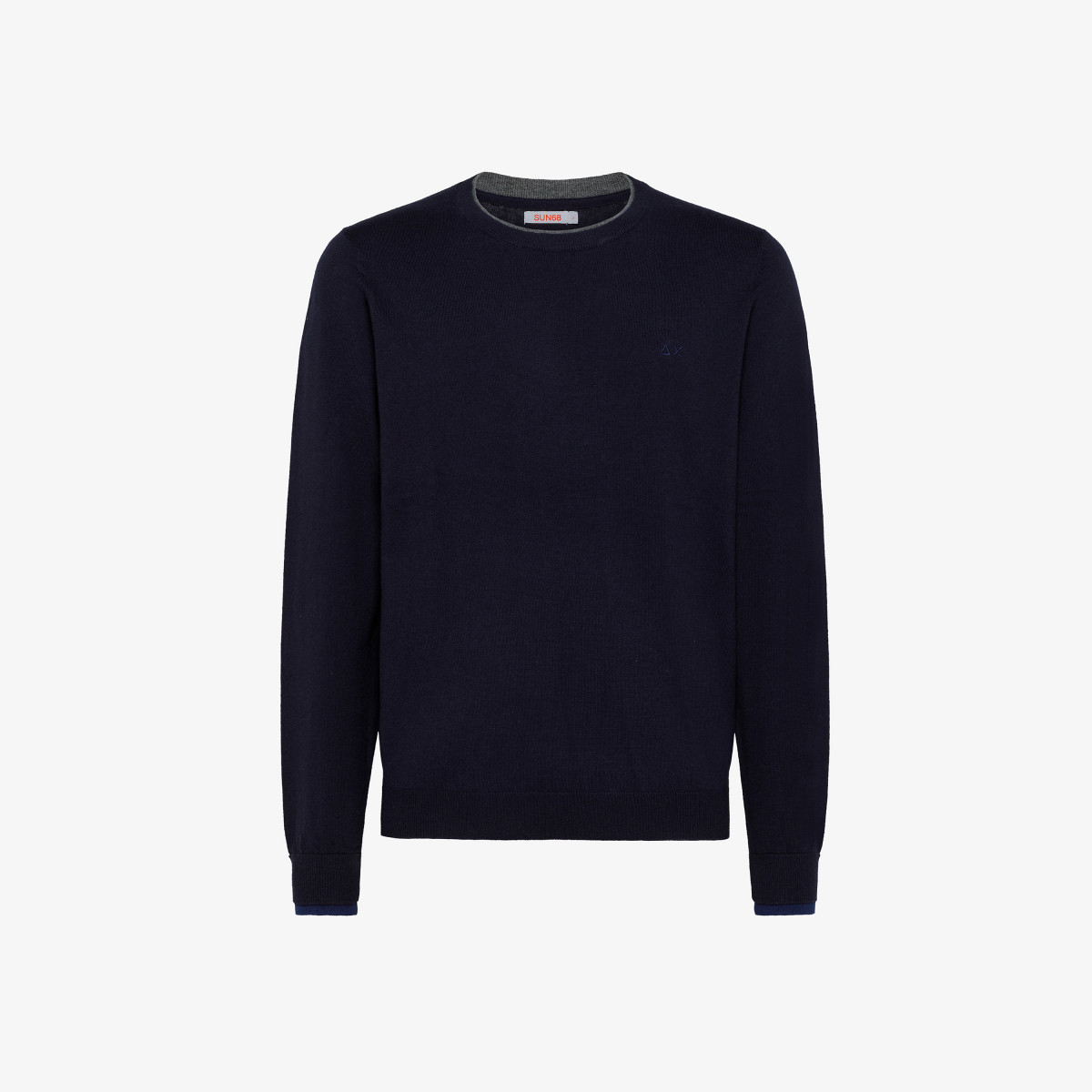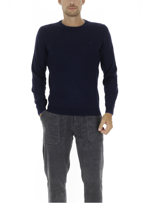 ROUND DOUBLE RIB NAVY BLUECollezione invernale, Maglia Sun 68 uomo, in misto lana, manica lunga, girocollo, collo e polsi con doppiatura in contrasto, vestibilità regular