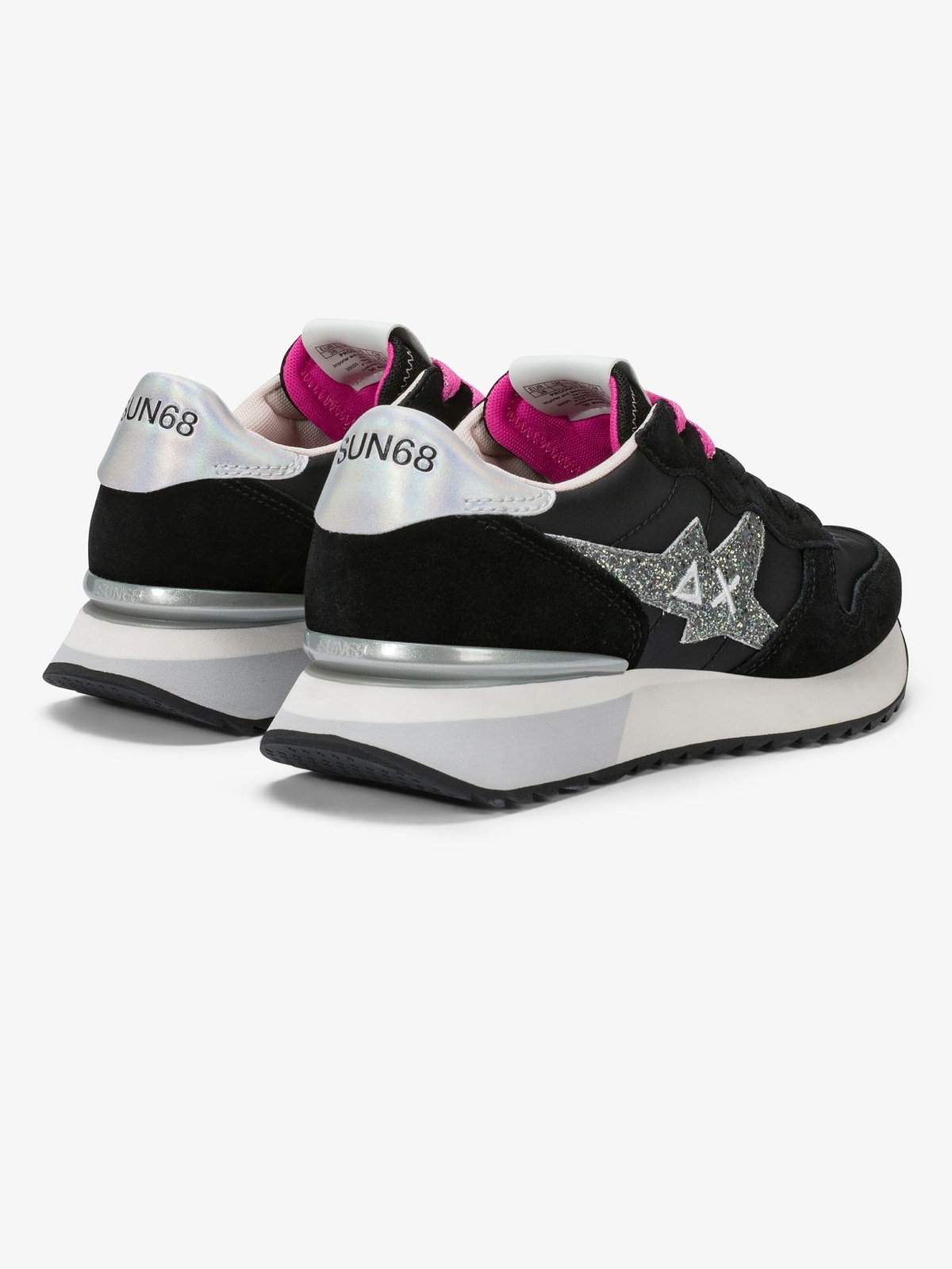 Innovativa, leggera ed estremamente femminile, Stargirl Glitter è la sneaker SUN68 che illumina i look quotidiani. La patch con glitter sul lato reinterpreta il logo in chiave moderna, definendo un'attitudine glam che si abbina con naturalezza alle borse della collezione.