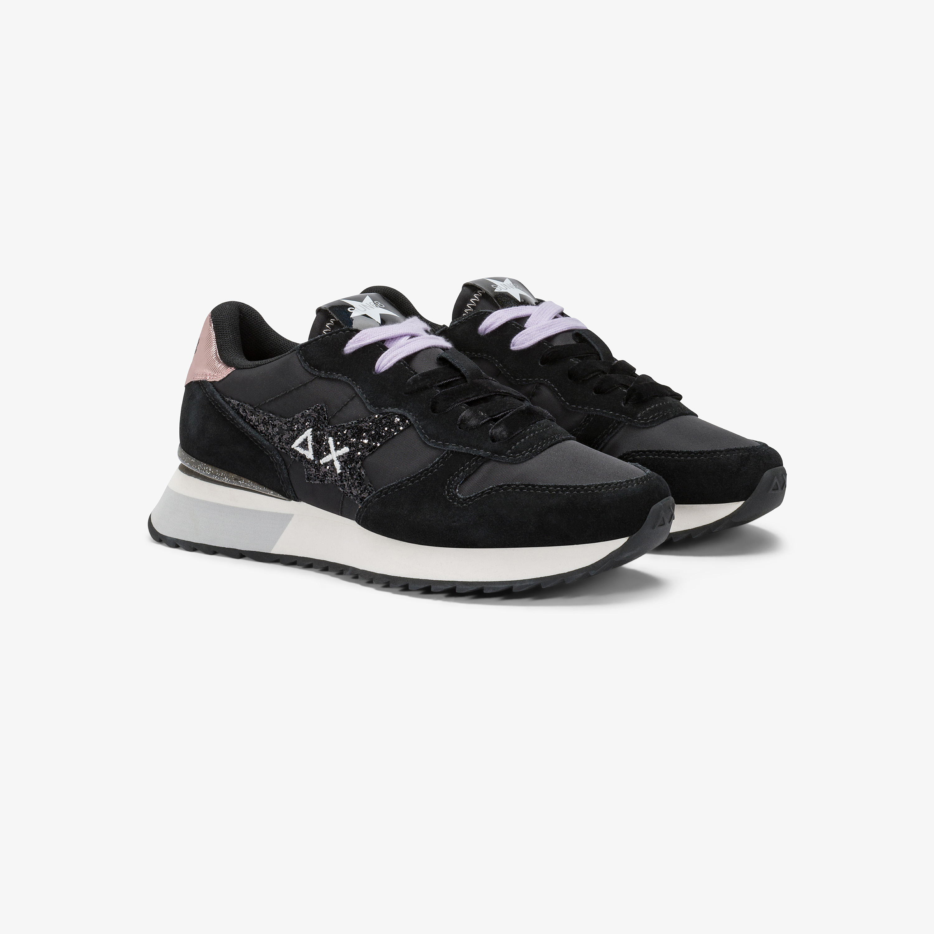 Innovativa, leggera ed estremamente femminile, Stargirl Glitter è la sneaker SUN68 che illumina i look quotidiani. La patch con glitter sul lato reinterpreta il logo in chiave moderna, mentre lo spoiler sul retro è rifinito con materale effetto snake.