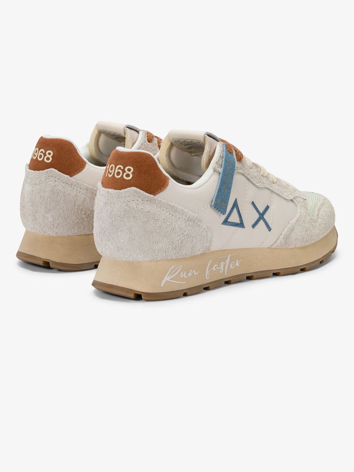 Sneaker Tom Vintage in nylon e suede bianco panna