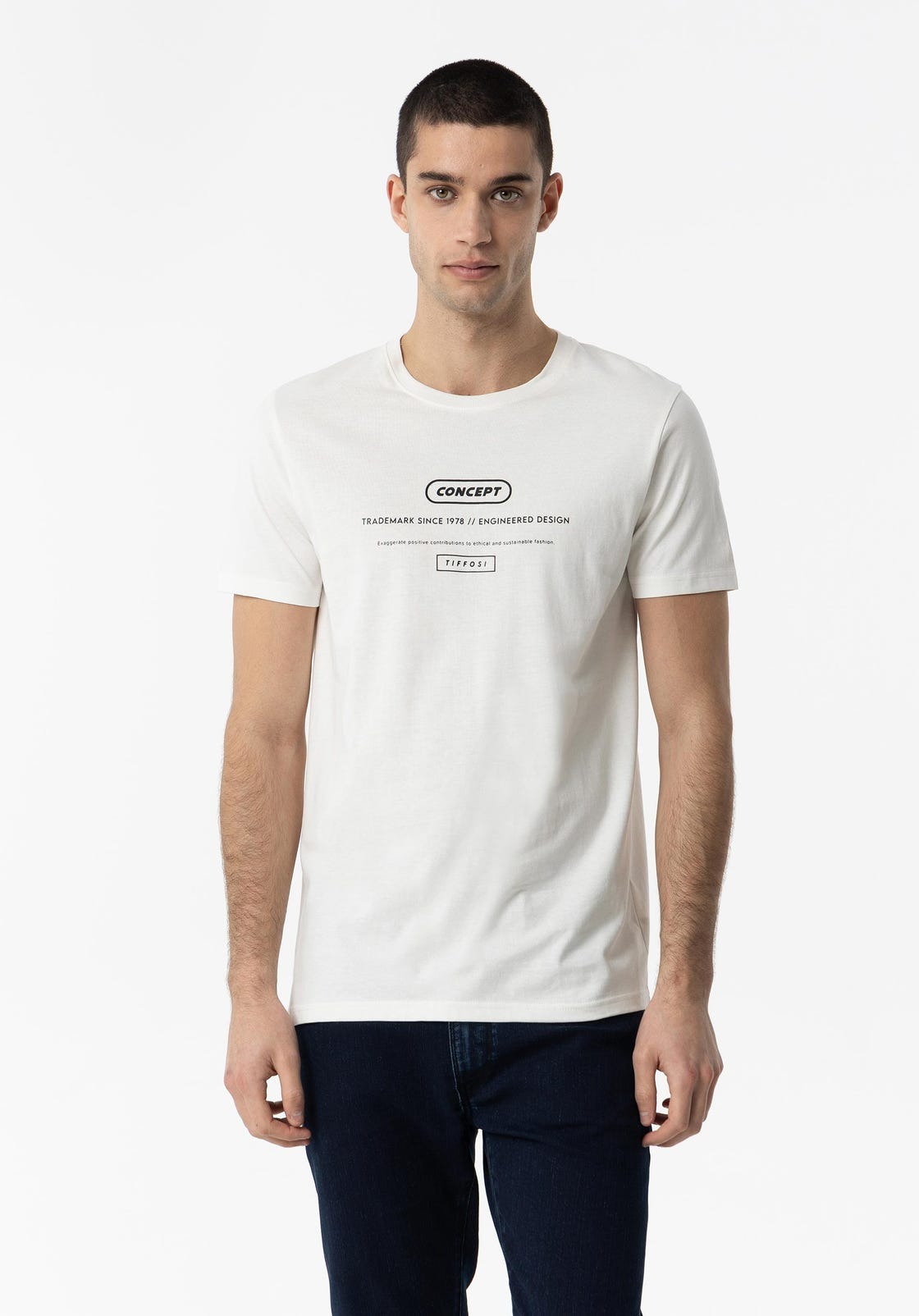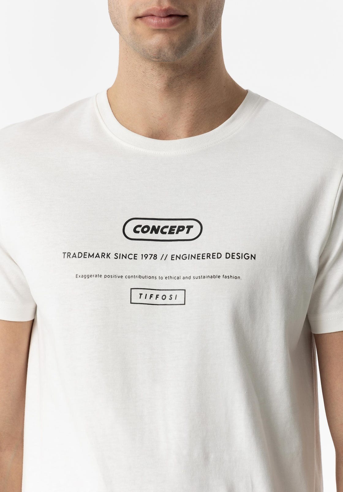 T-shirt slim fit con girocollo e maniche corte. Stampato con dettagli in rilievo.
