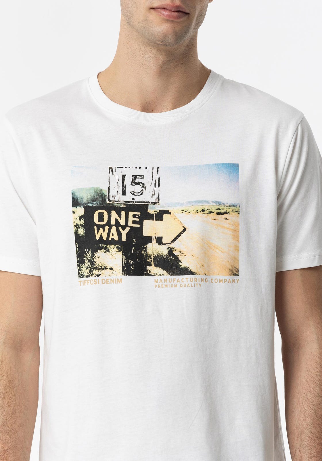 T-shirt a maniche corte e scollo tondo. Stampa frontale.