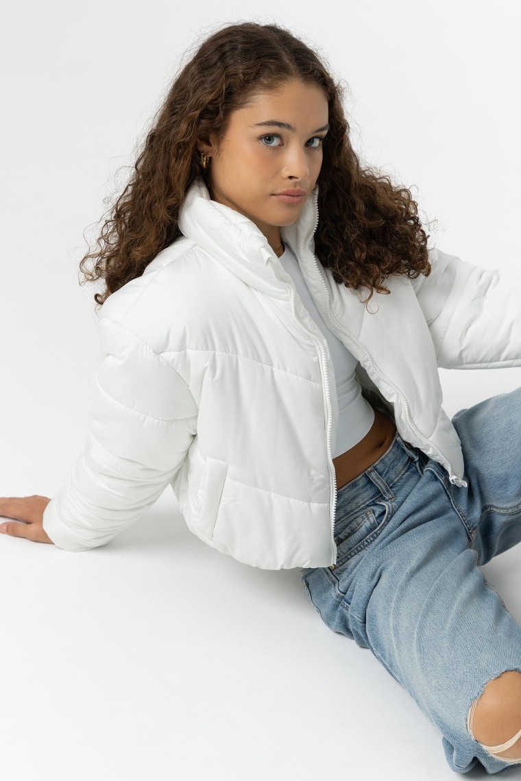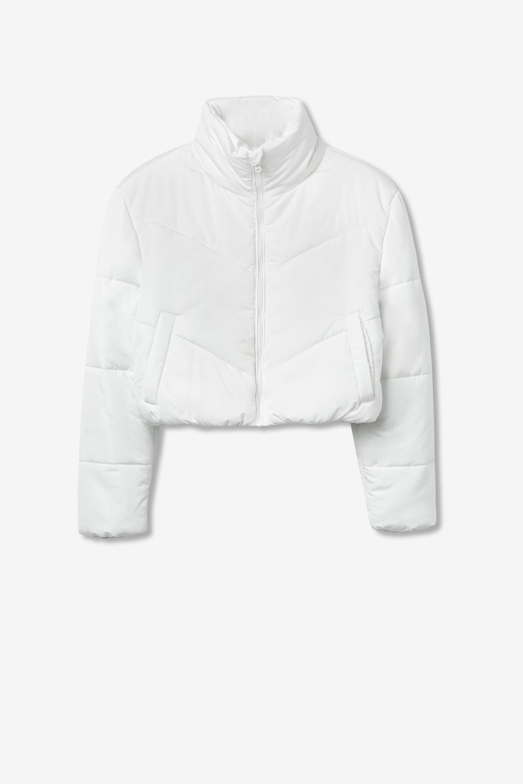 Giacca con colletto rialzato e maniche lunghe. Elastico ai polsini e in vita. Tasche laterali. Patta frontale con zip.