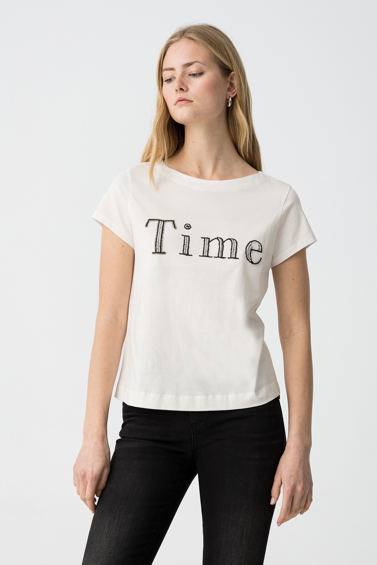 Maglietta girocollo a maniche corte.