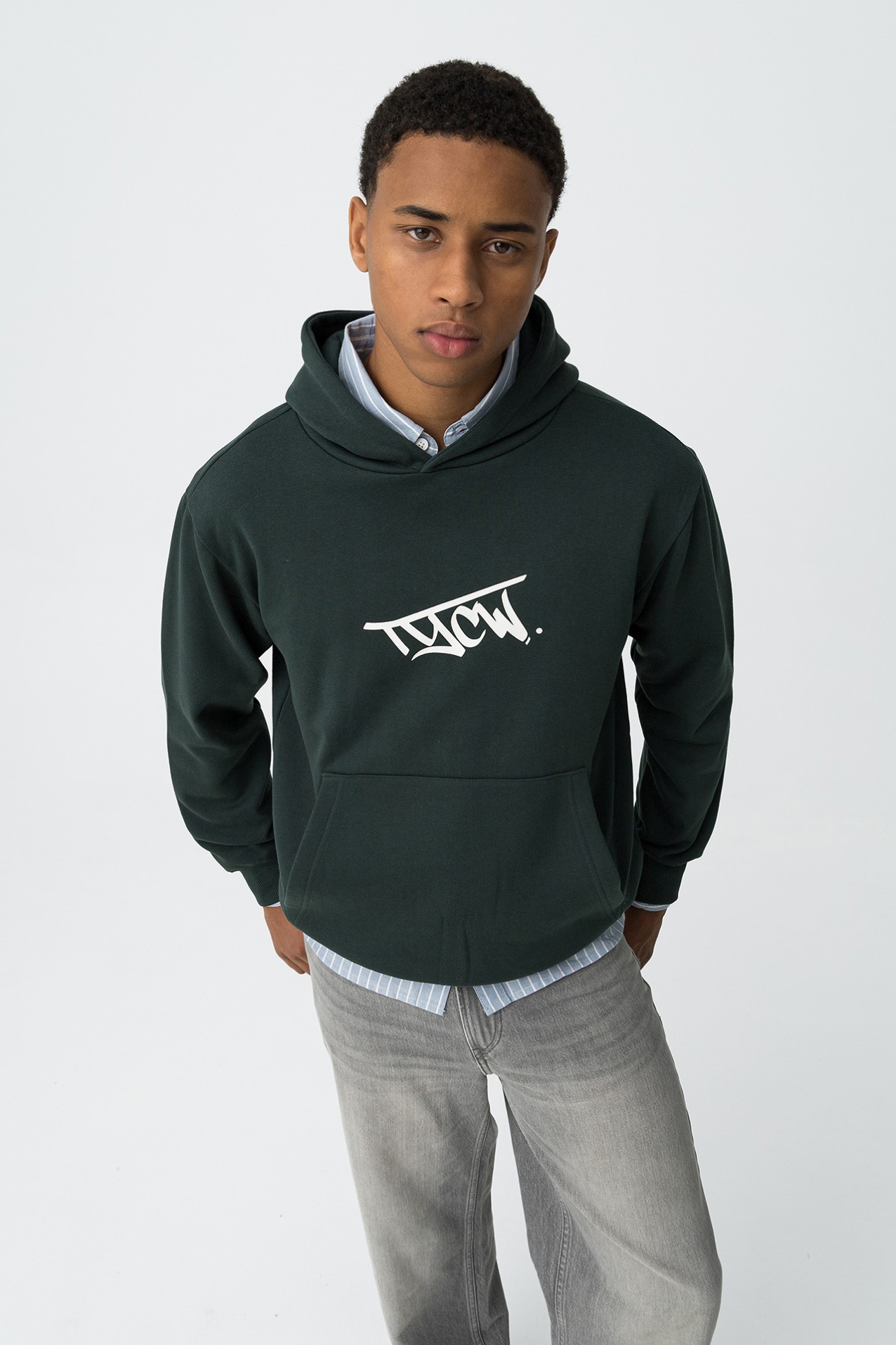 Felpa con cappuccio dalla vestibilità regolare, con logo stampato e tasca a marsupio. Cappuccio, maniche lunghe, bordi a coste e interno spazzolato.