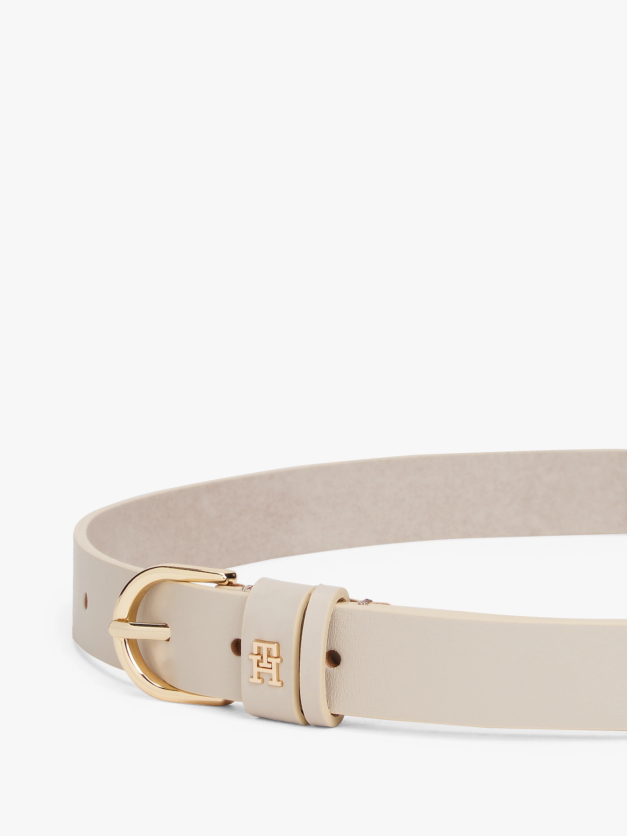 La raffinata cintura in pelle aggiunge una nota sofisticata ai tuoi look, grazie alla scintillante fibbia tonda e alla placchetta con monogramma TH.