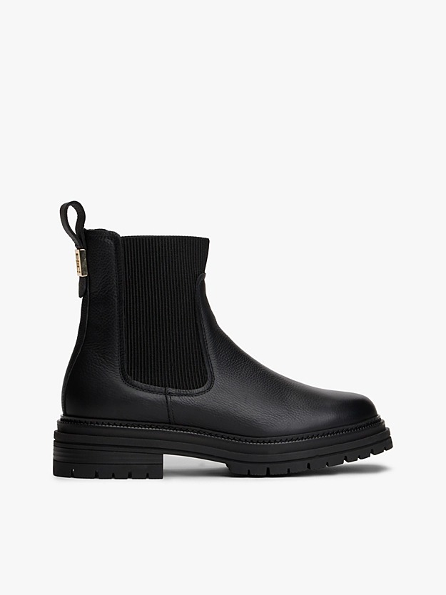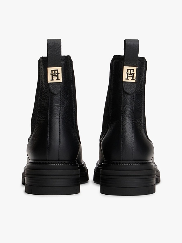 Gli stivaletti Chelsea, con esterno in pelle zigrinata e placchetta decorata dal monogramma TH, aggiungono un tocco raffinato e grintoso ai tuoi outfit.