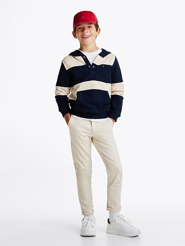 I pantaloni chino in twill di cotone stretch, dalla vestibilità comoda e aderente, rappresentano una rivisitazione irresistibile dello stile smart casual.