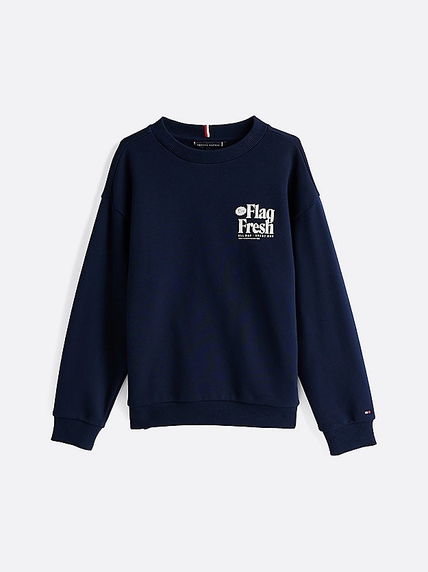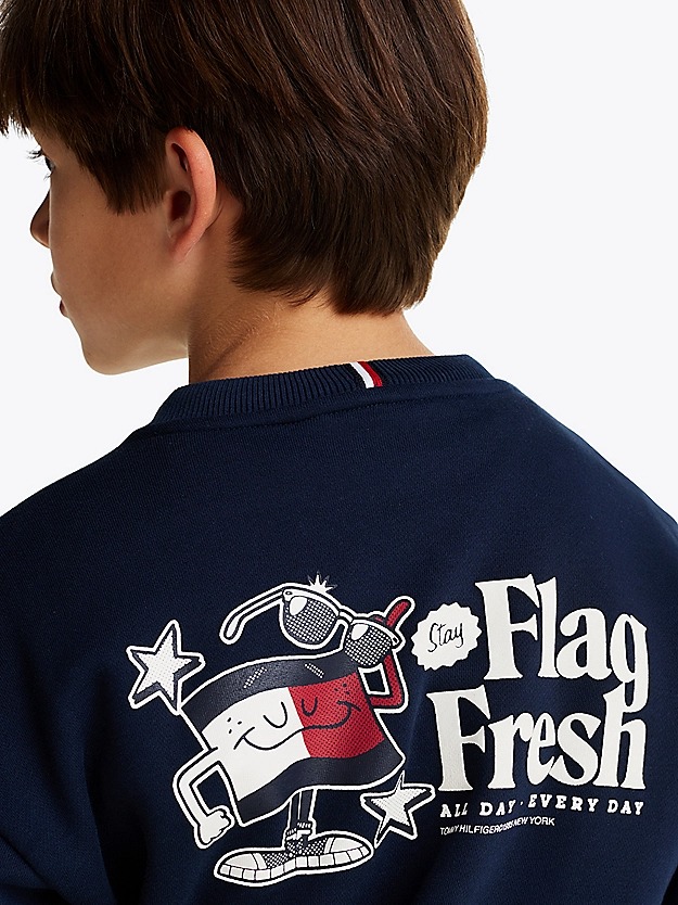 La felpa in misto cotone, vivacizzata dalla stampa con slogan sul davanti e sul retro, aggiunge un tocco di stile ai tuoi outfit a strati.