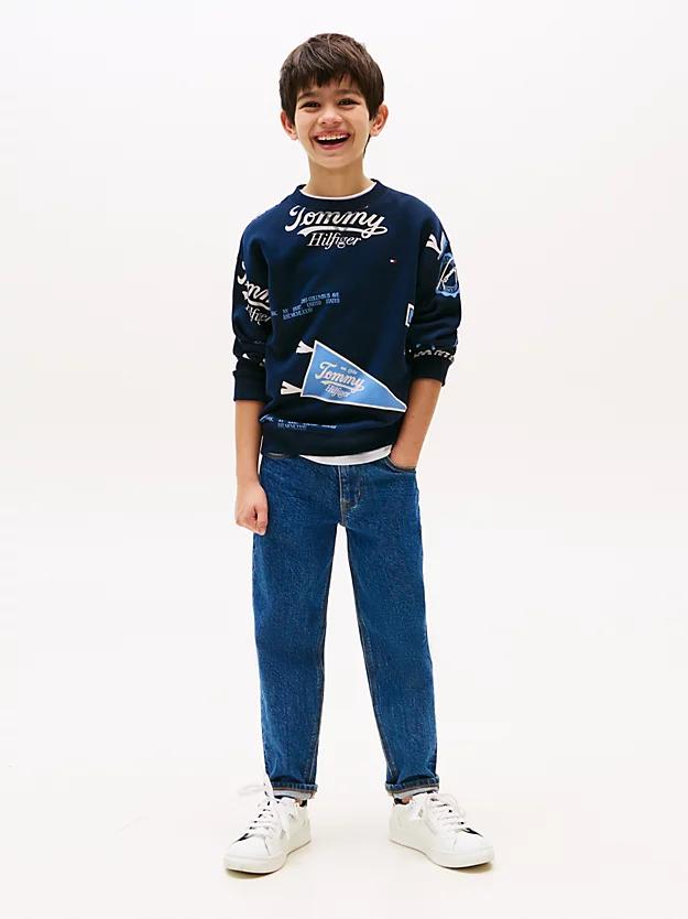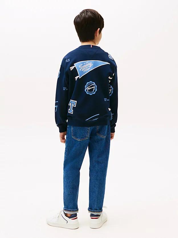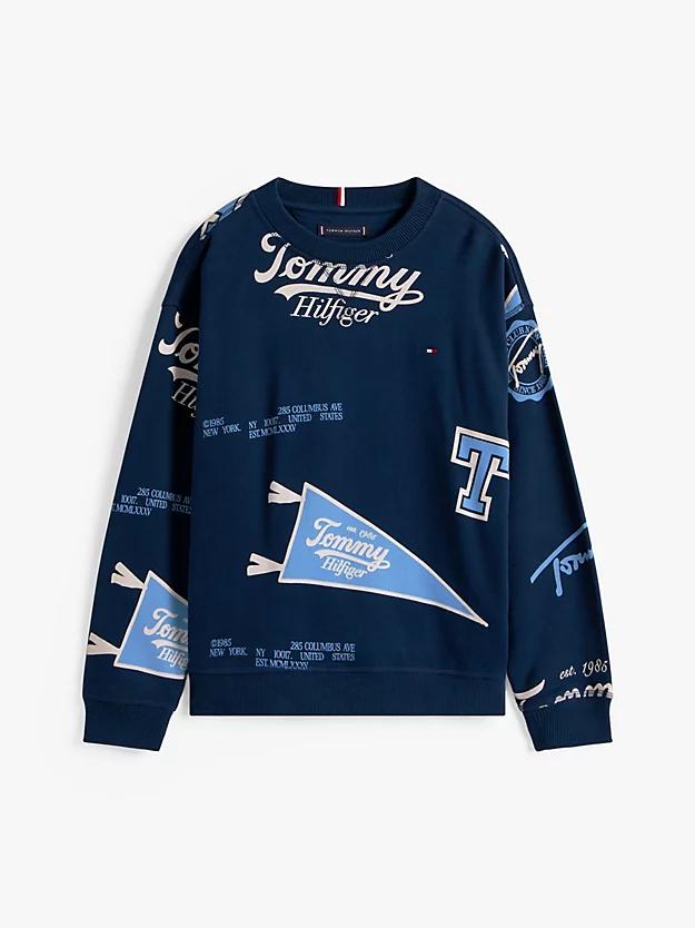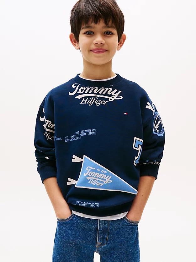 La felpa in misto cotone è decorata da loghi e grafiche in stile college, per un'allegra rivisitazione del classico capo sportivo.