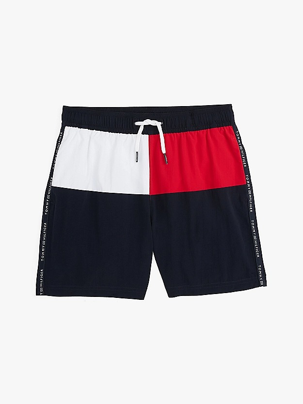 Aggiungi una nota di colore ai tuoi outfit per la piscina grazie al costume boxer con l'inconfondibile logo Tommy Hilfiger ripetuto ai lati.