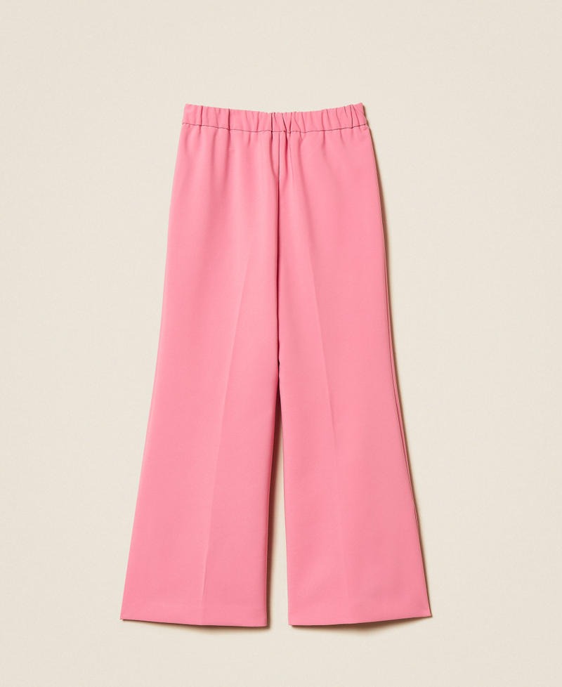 Pantaloni da bambina in crêpe con spacchi al fondo. Hanno elastico inserito in vita sul retro, chiusura con zip invisibile al fianco, linea flare.