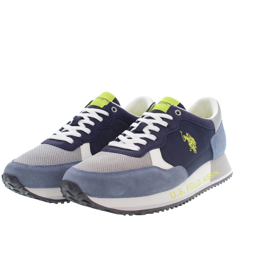 Sneaker con logo e inserti vari a contrasto colore su tomaia, suola con battistrada, chiusura tramite lacci piatti, punta rinforzata