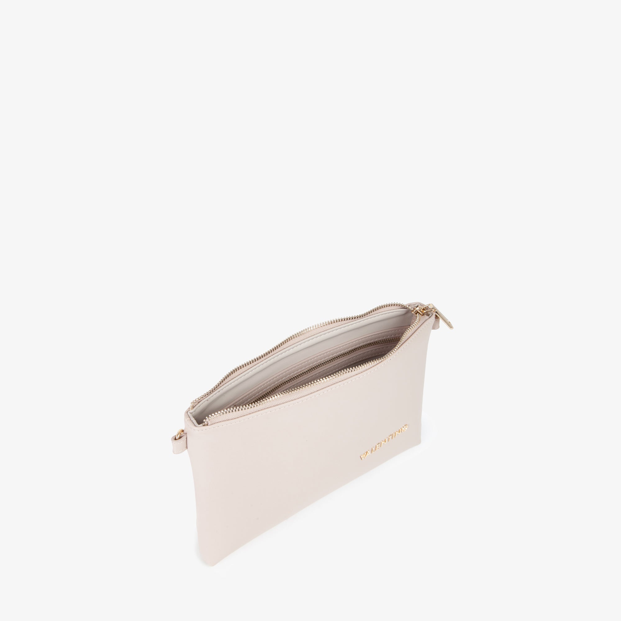 Pochette con doppia portabilità e logo lettering su fronte borsa