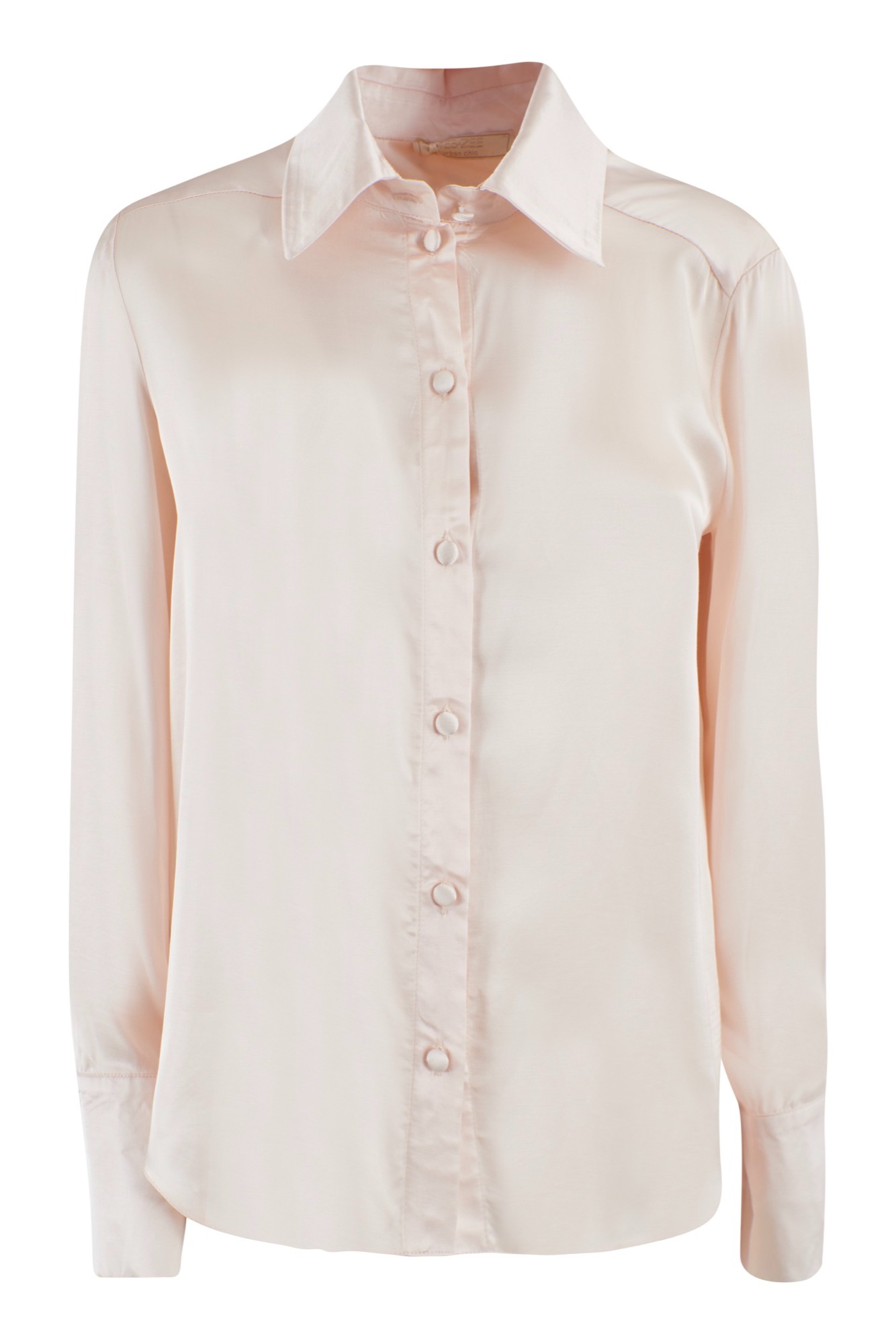 Camicia per donna in raso a maniche lunghe con colletto classico a tinta unita