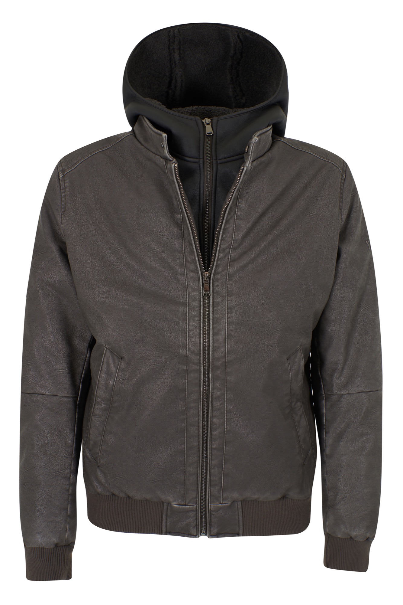 * Bomber in similpelle con cappuccio in felpa integrato.