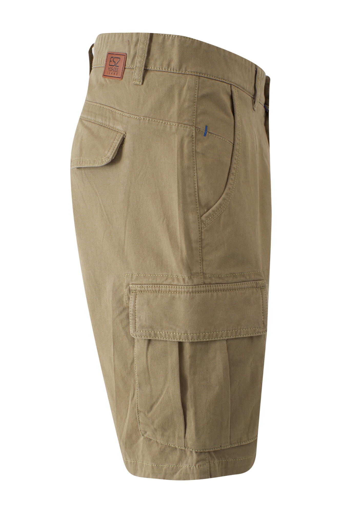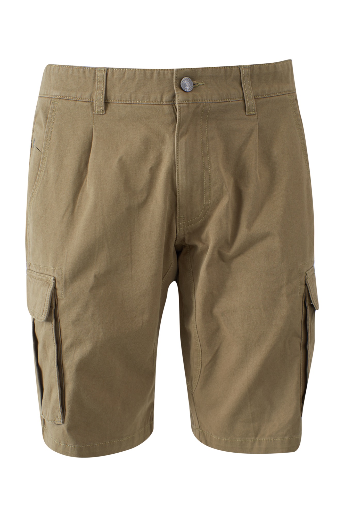 Bermuda con tasche in stile cargo, chiusura in vita tramite passanti, bottone e zip, orlo dritto